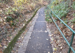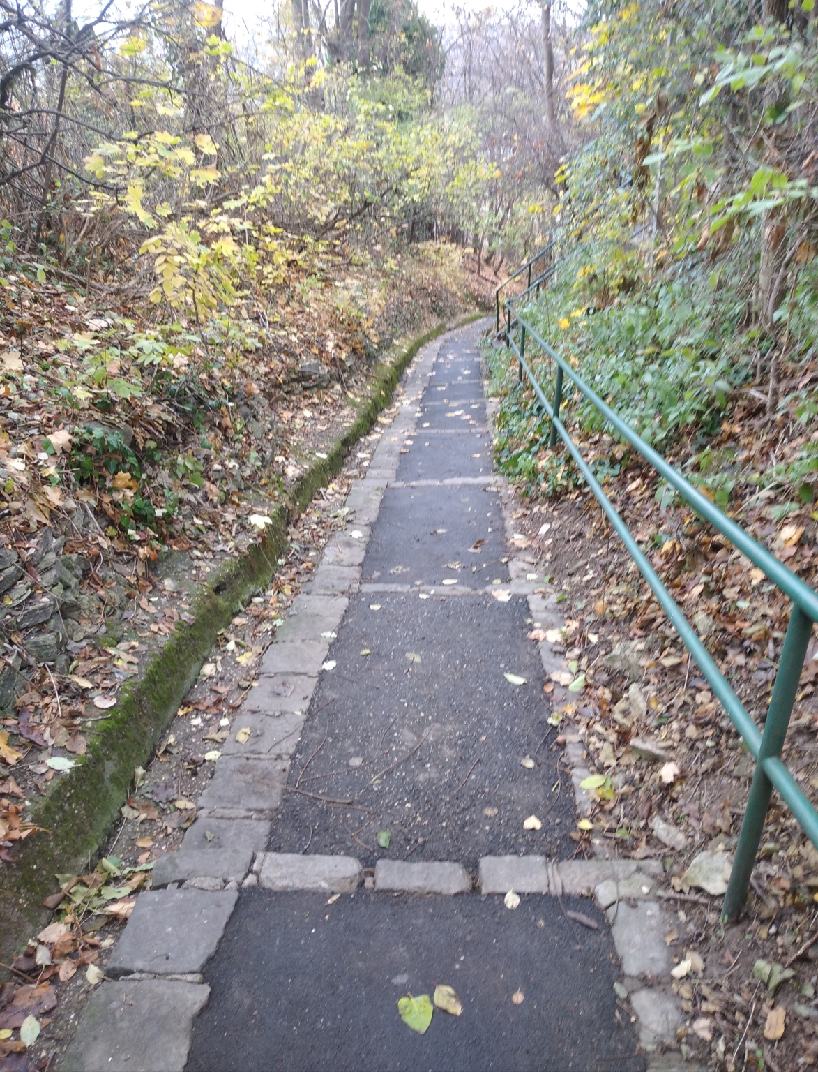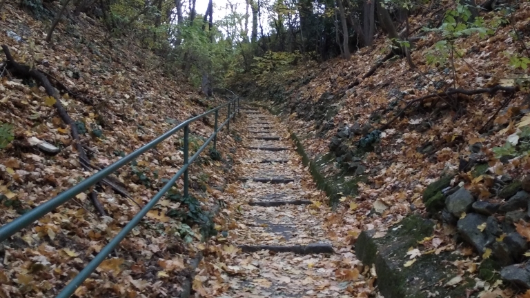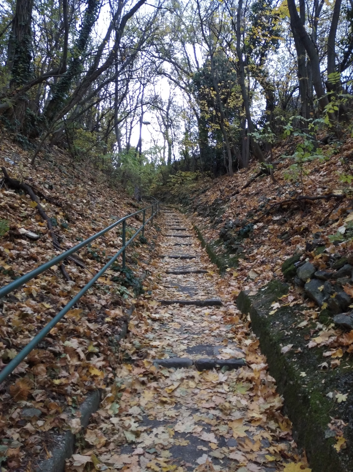 Rengeteg falevél borítja a lépcsőt, ami emiatt nagyon csúszós.