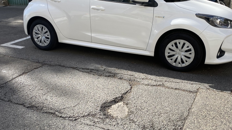 Pár hét alatt kinyílt az úttest és naponta több száz autó hajt bele ebbe a kátyúba az utcában.