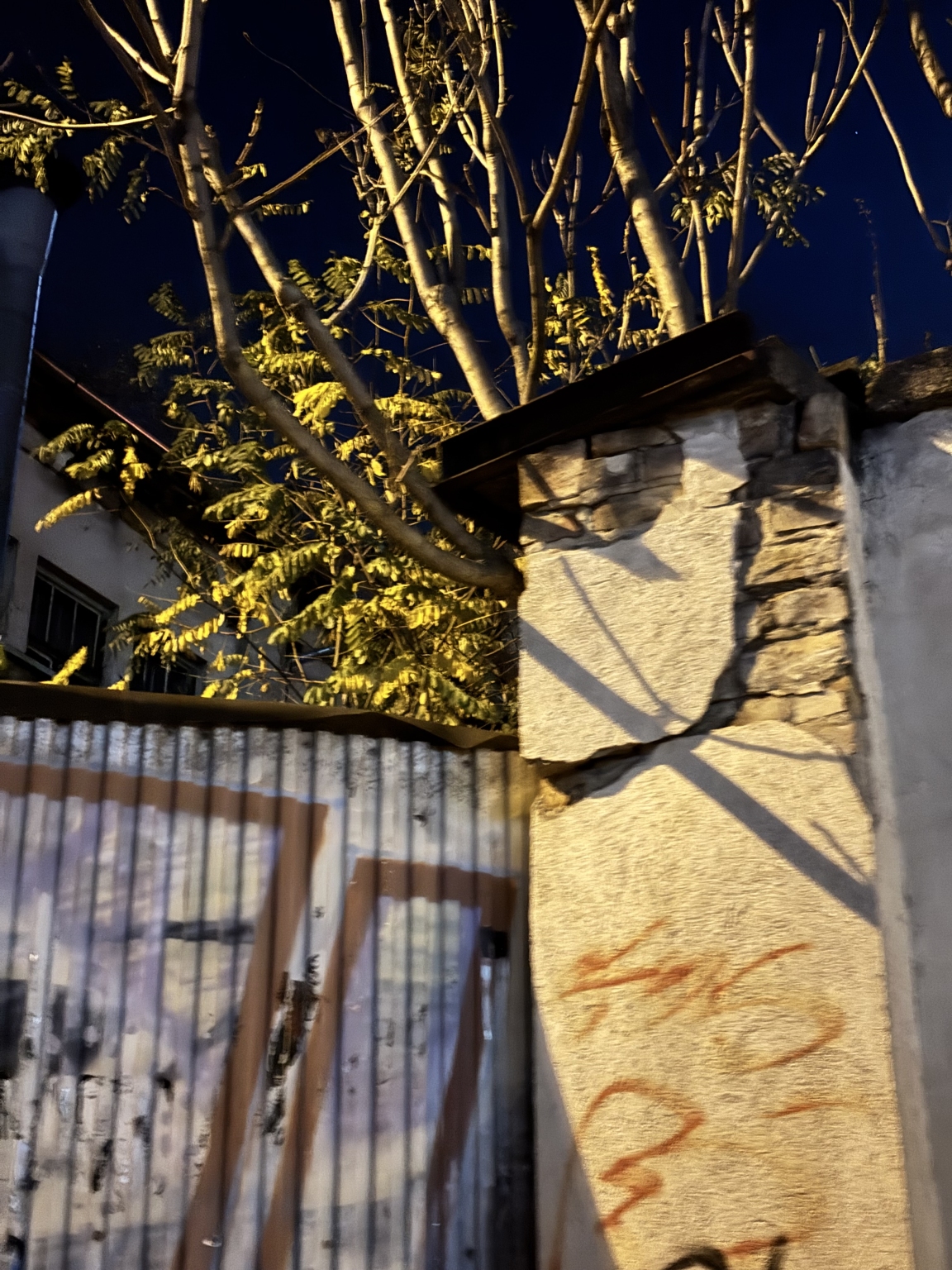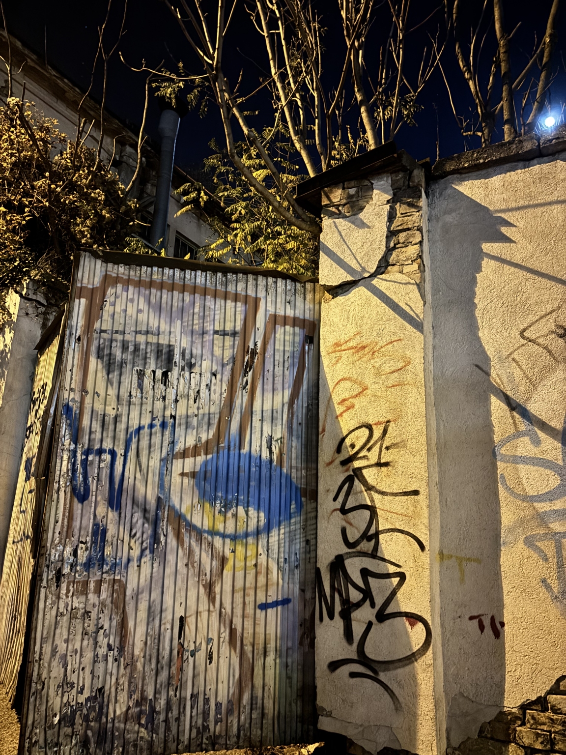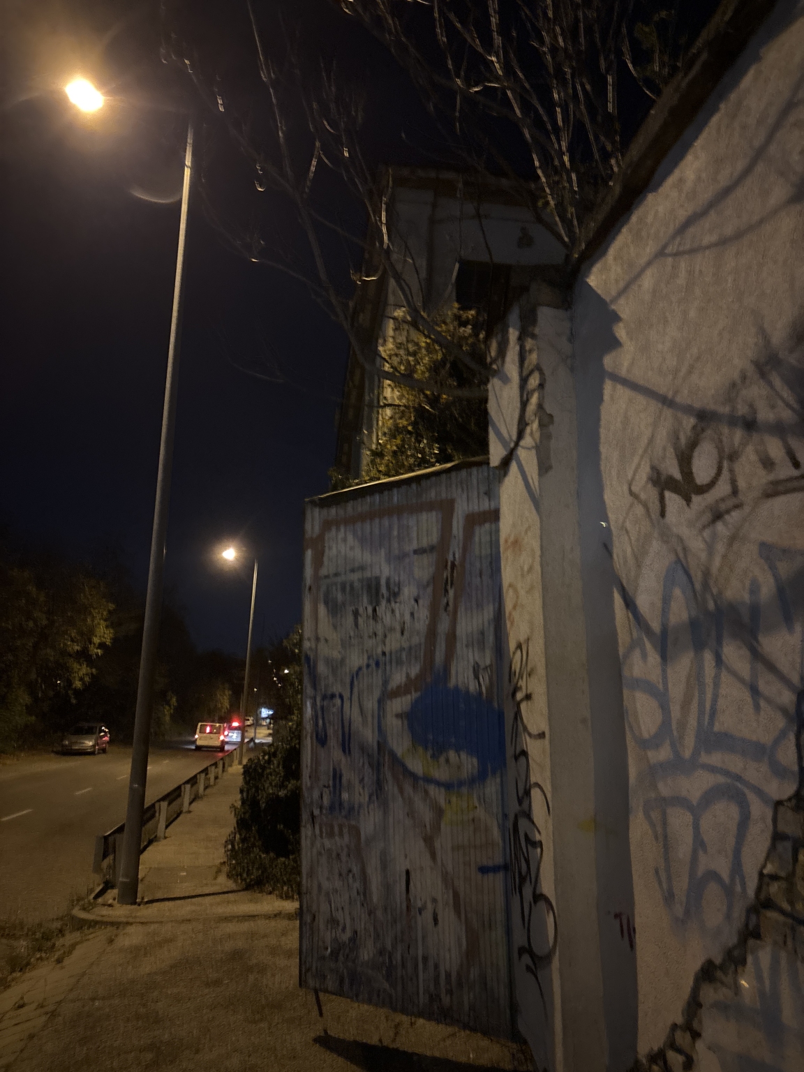 A kapu mellett omladozik a fal ami közvetlen a járda mellett van.