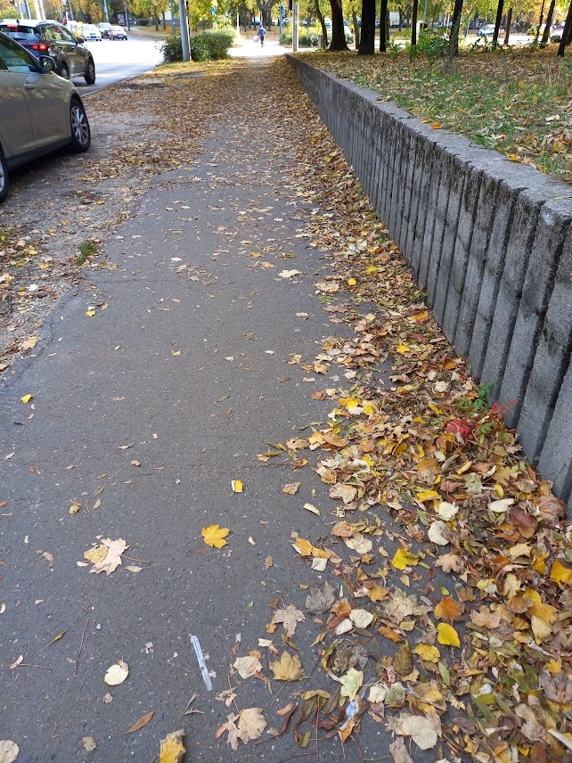 Bp. XIV. kerület, Füredi út és a Szentmihályi út/ Csertő utca kereszteződésében van egy gazdátlan park, amely mellett a járdán már bokáig ér az avar. A járókelők a fizikai törvényei szerint zömítik -porítják a feleveleket, esős időben csúszkálnak, elesnek rajtuk. Kérjük az avar összegyújtését a járdáról!