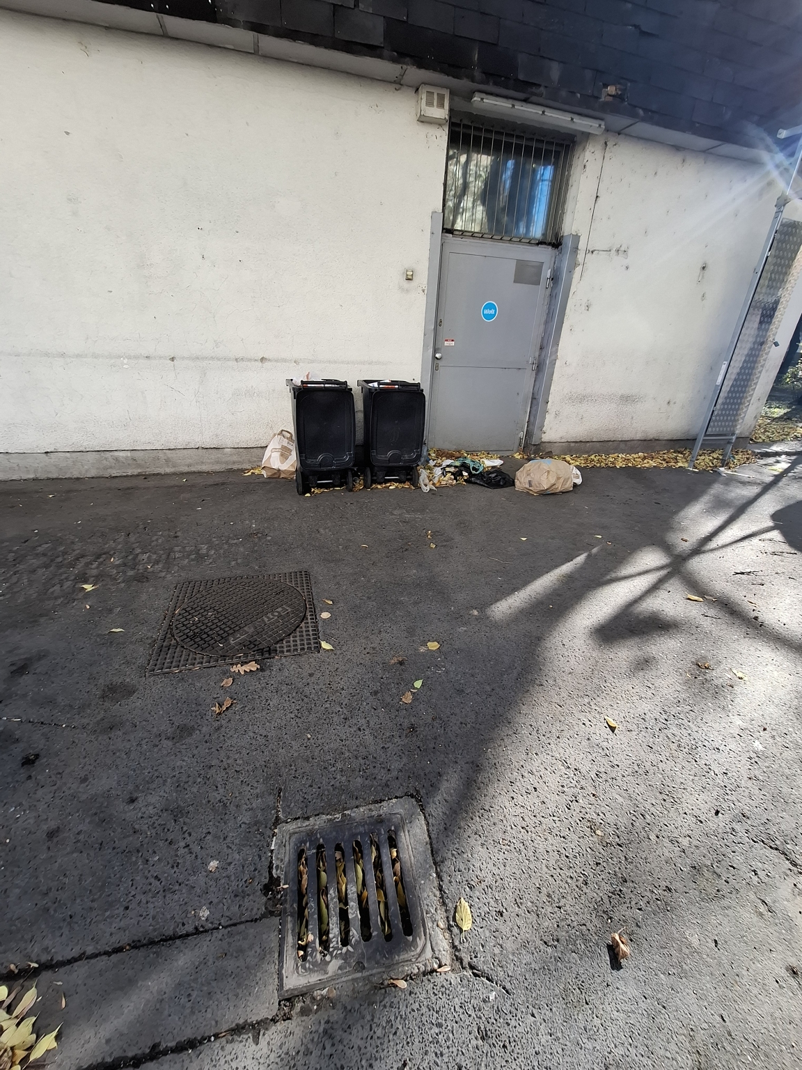A bwzárt Spar üzlet mellett a csatorna teli van falevelekkel.