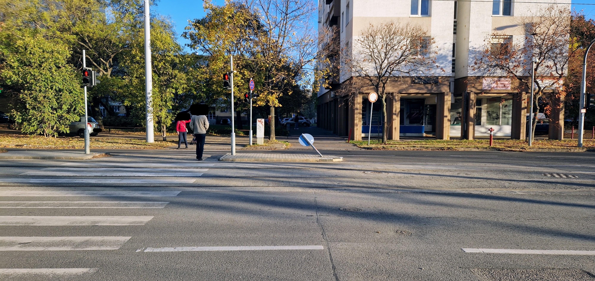 Az Etele út # Hadak útja lámpás kereszteződésben (Etele Plaza sarkánál) kidöntötték a képen látható táblát. Kérem a javítását.