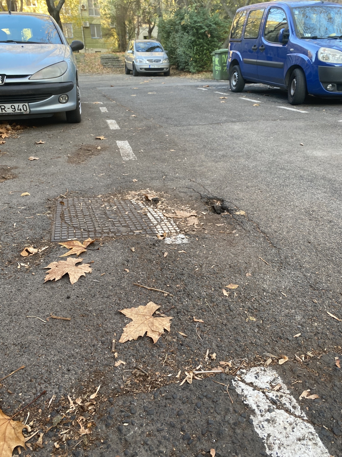Az adott helyen a csatornafedél környékén be fog szakadni az út. Nagy lyukak vannak az aszfalt alatt, hamarosan be fog szakadni. A képen is látszik, hogy meg van süllyedve az útburkolat.