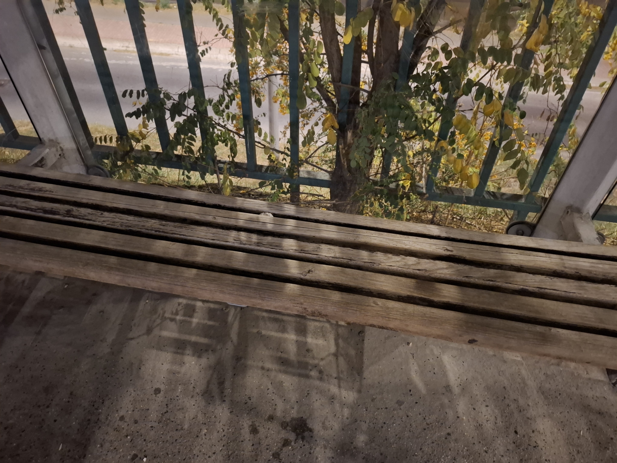 Közvágóhíd buszmegállóban, a Rákóczi hídra felérve, a MÜPA oldalában teljesen lakopott a padról a lakkozás. Kérem javítsák!