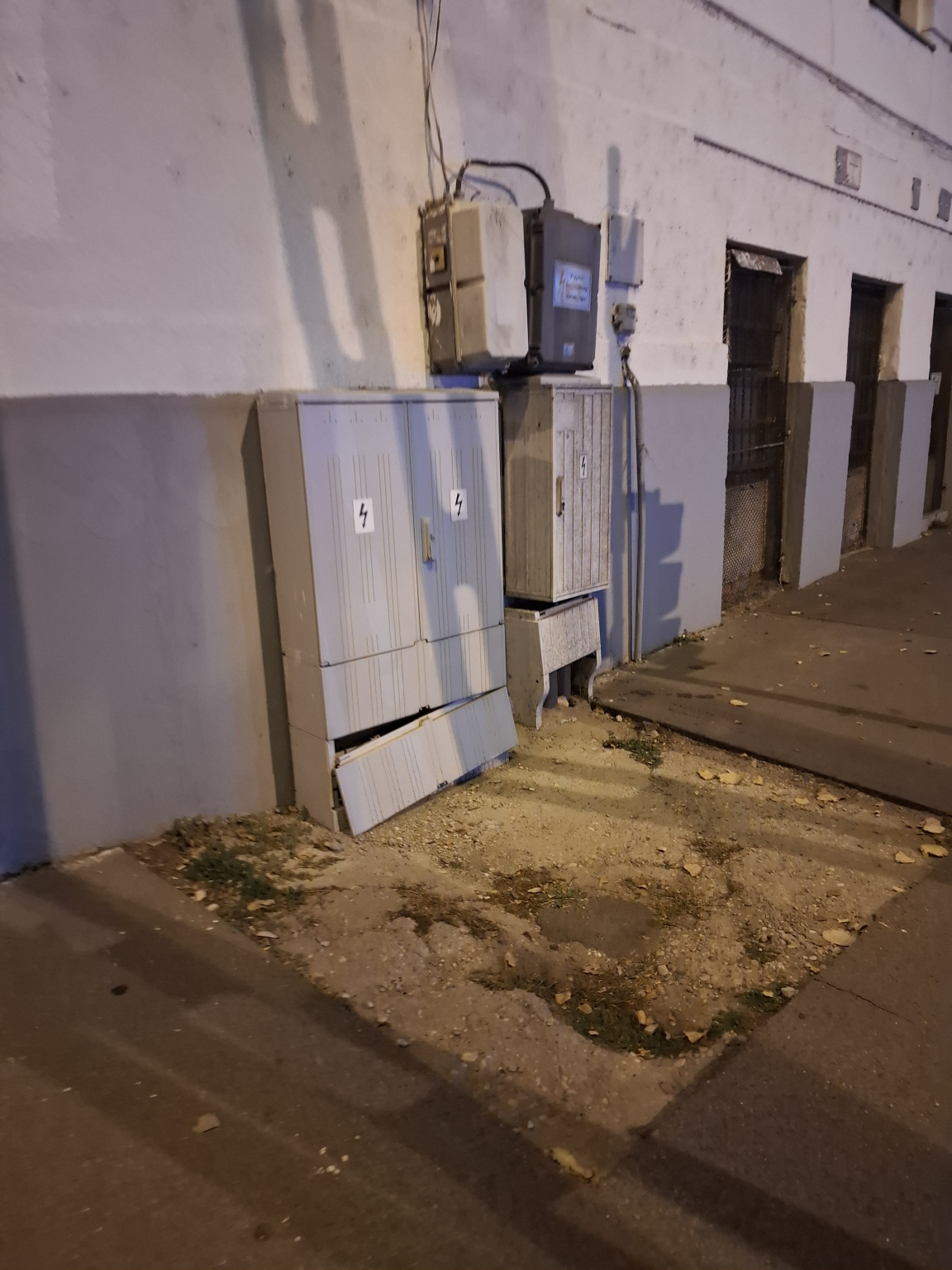 A közműszekrények előtt az aszfaltozás hiányzik.