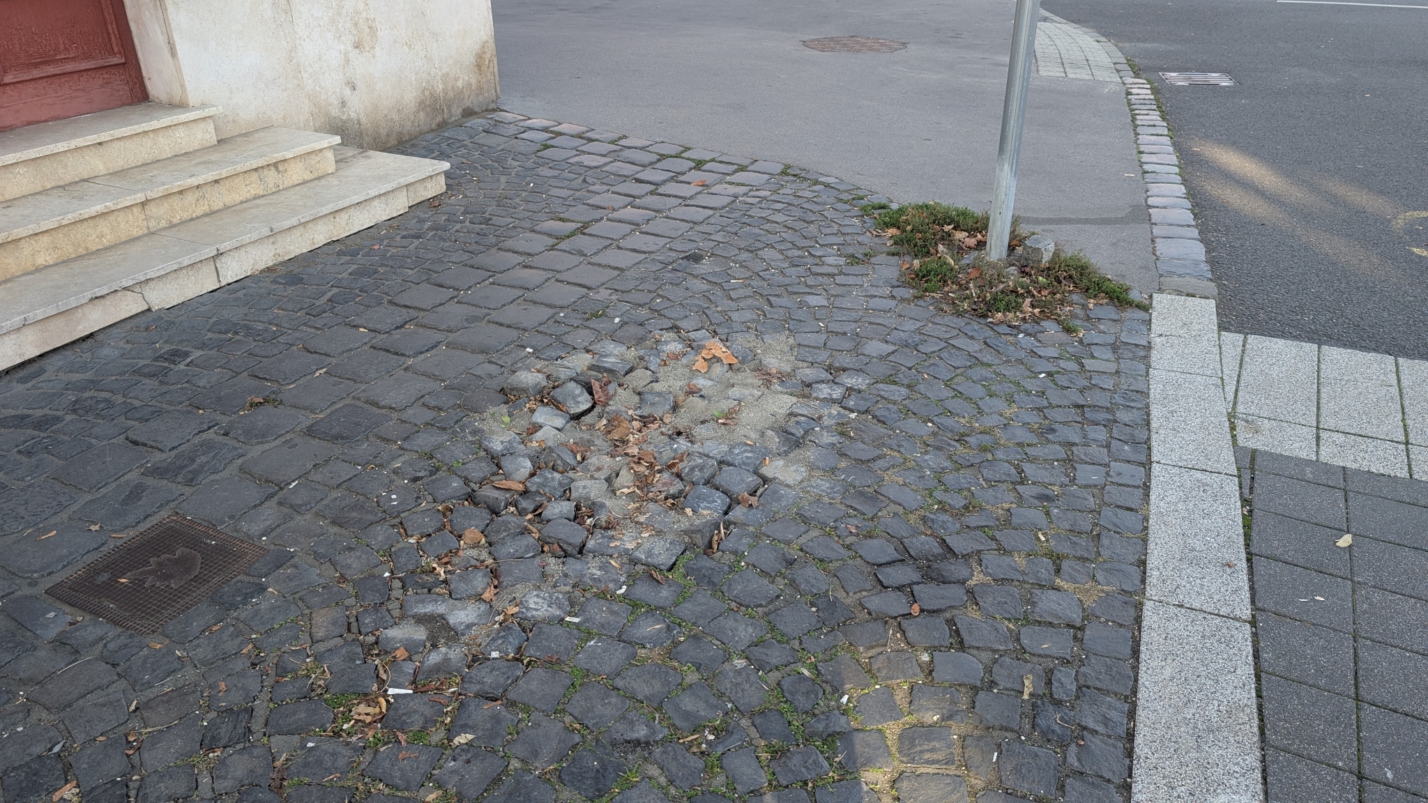 Kimozdult néhány kő a Bokor utcában, balesetveszélyes. Kérjük a járda burkolat helyreállítását.