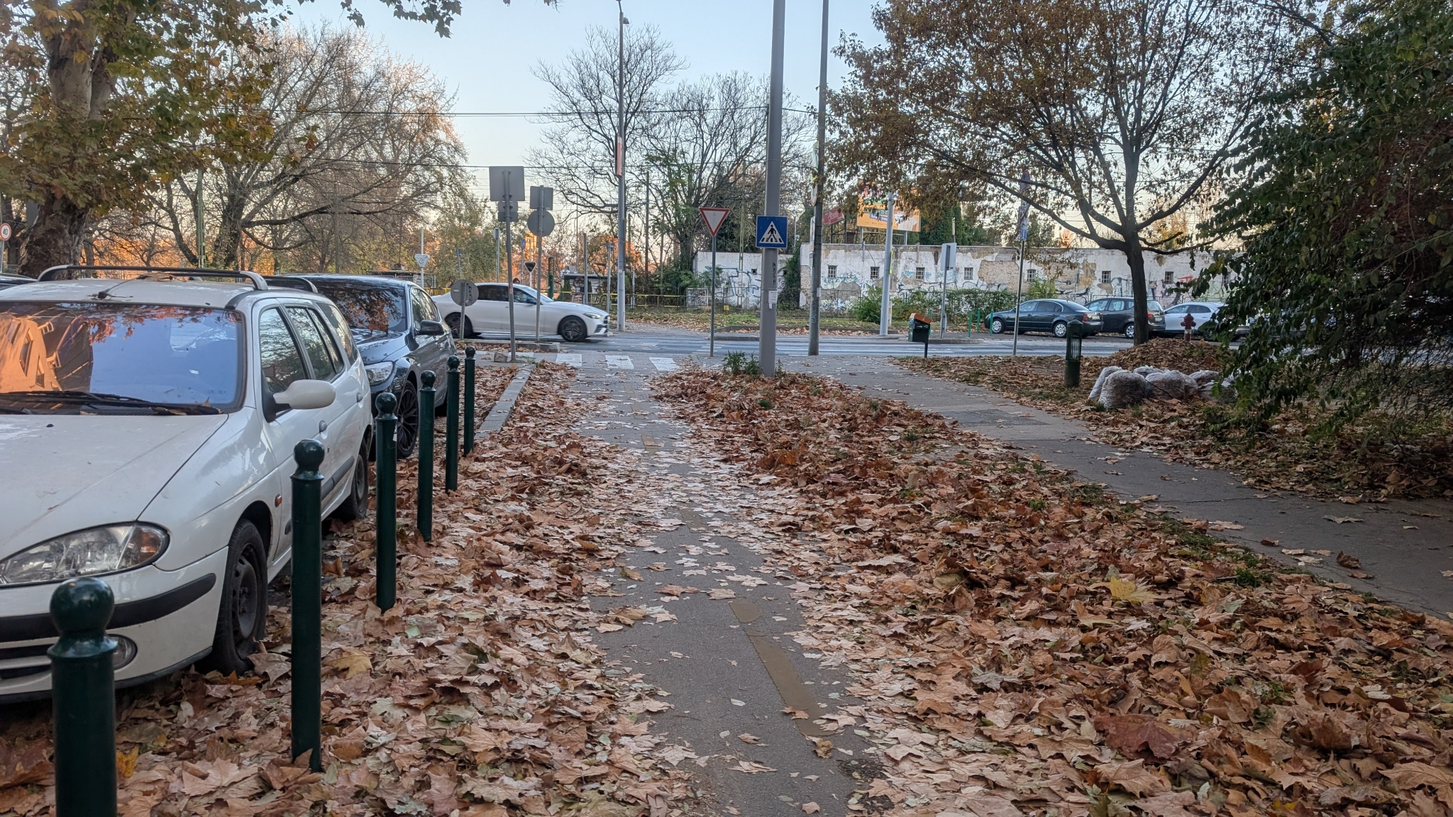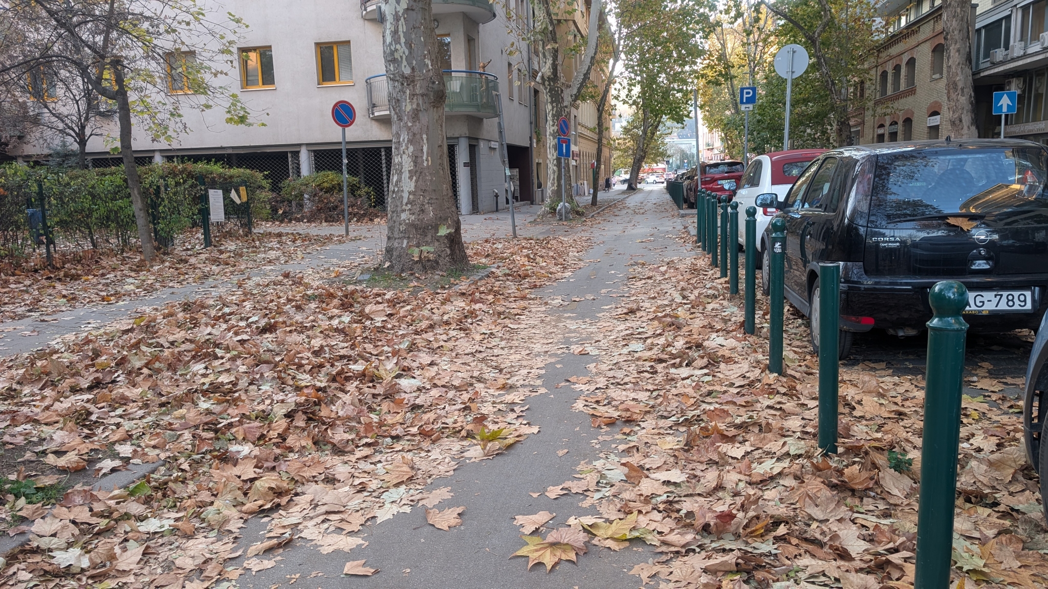 Visszatérő probléma a jelzett helyen, hogy az őszi levélhullás időszakában nem takarítják meg a kerékpárutat. Kérjük az illetékest, figyeljen oda erre a feladatára.