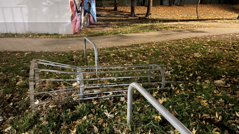 Kitört a fa és ki van döntve az azt védő fém keret