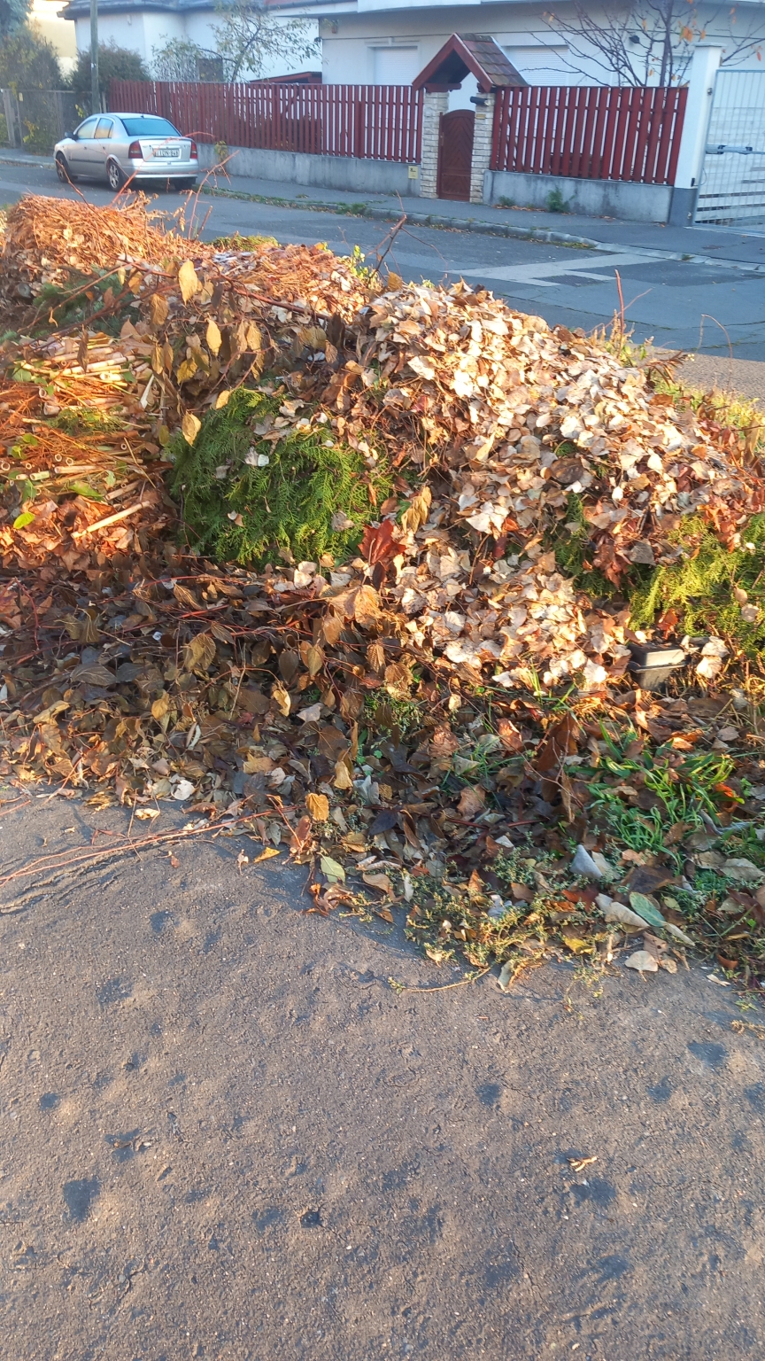 1144 BP. Ötvenes utca 1 és Kerepesi út kereszteződésénél a zöldhulladékot hónapok óta nem szállították el.