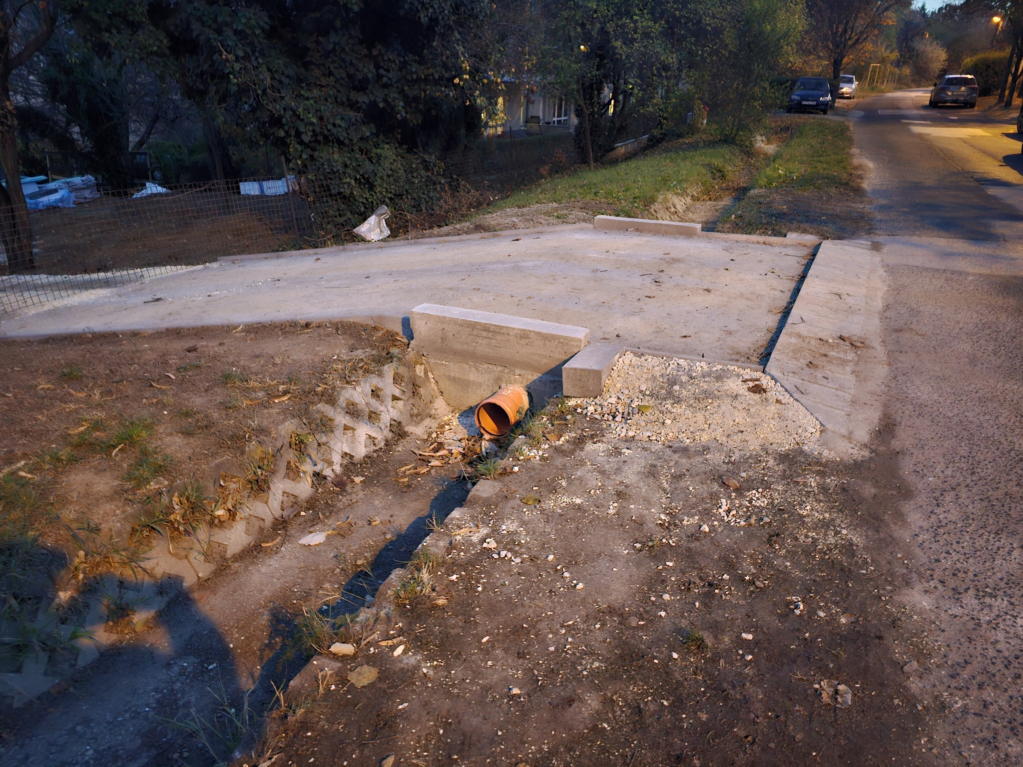 Kivágott fa és szűkített vízelvezető