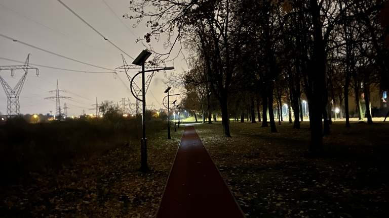 A futópálya mellé telepített oszlopokon nem eg a lámpa. Hetek óta. A telepített kb 12 oszlopból csak 3 világít. Vak sötétben futnak itt. Rendkívül balesetveszélyes!