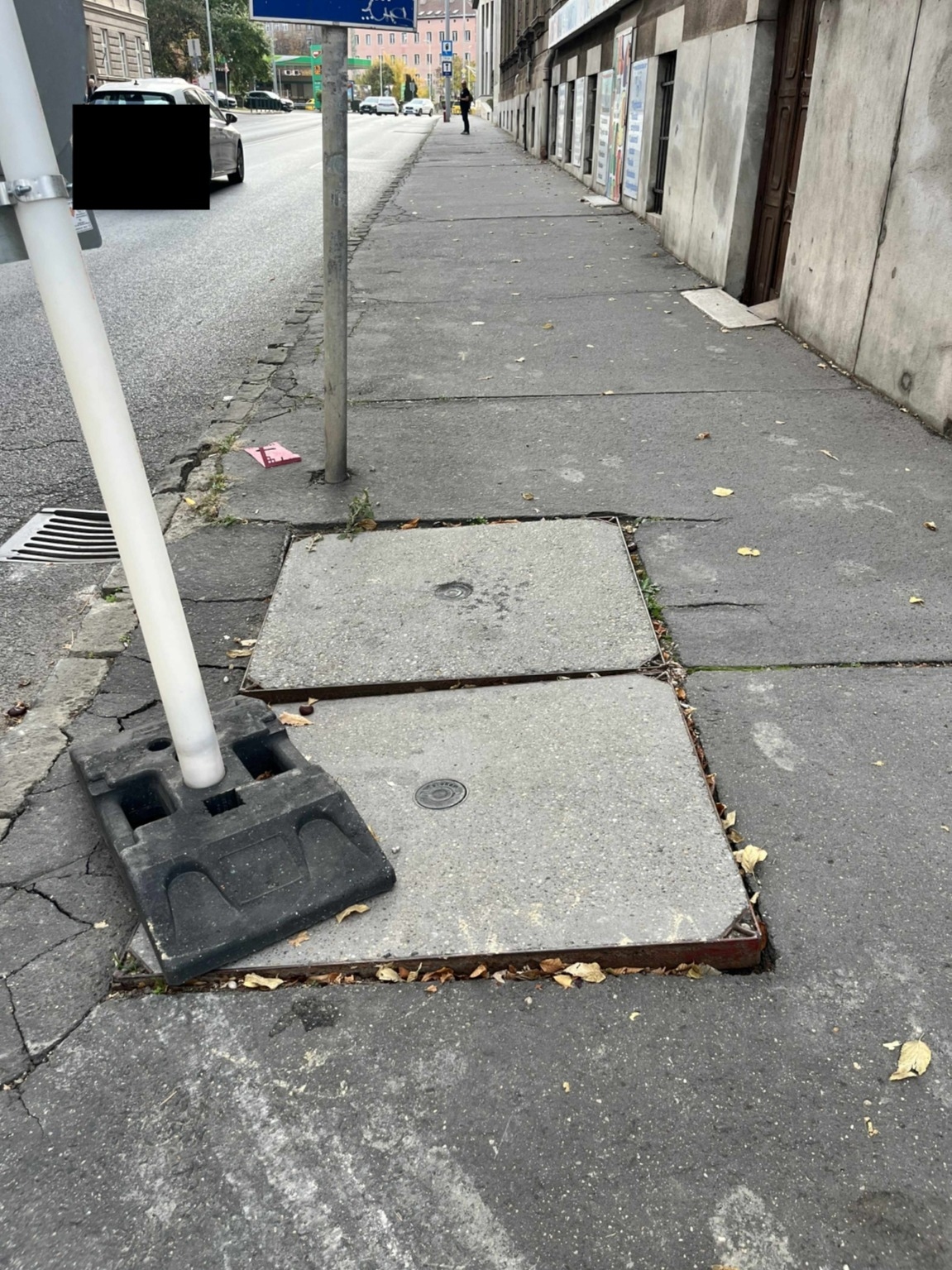 Tönkrement billegő fedlapok .....a közeli építkezésről adtak kölcsön egy táblát hogy nehogy valaki beleessen.