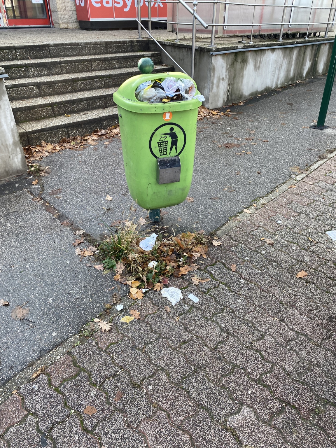 A Budenz úton, a CBA előtt kérem a szemetes kiürítését, mert megtelt.