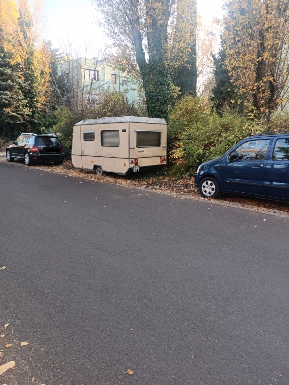 - kicsivel hátrébb Bastei lakókocsi, régóta ott áll, műszaki lejárt, biztosítás nincs