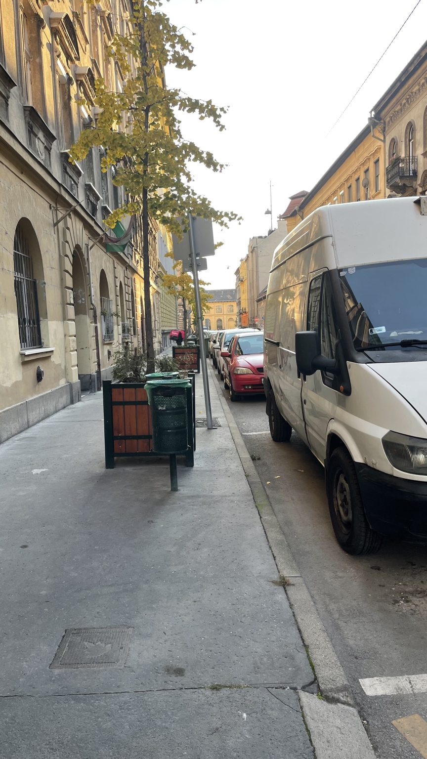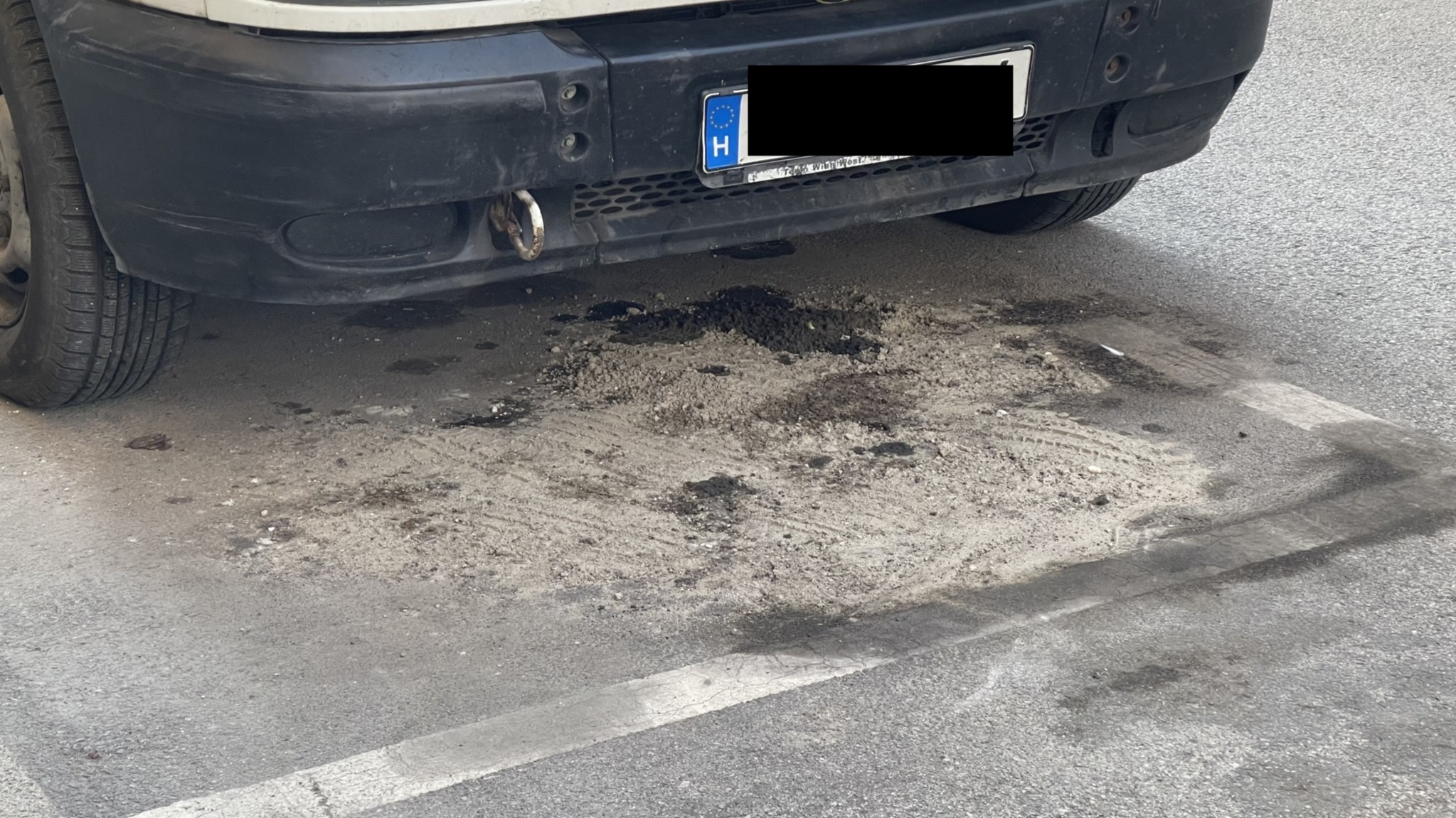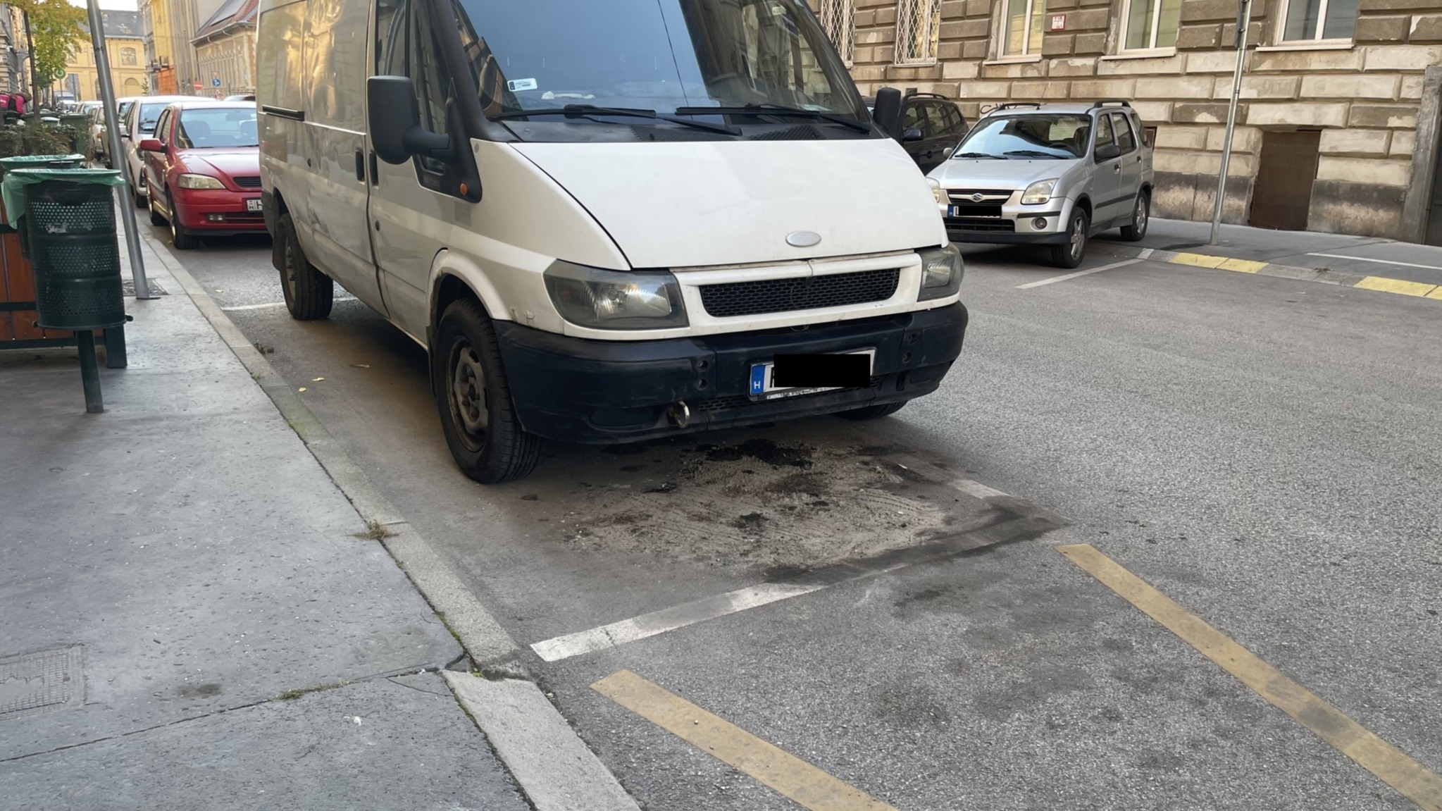 Az utcában parkoló kisteherautókból, folyik az olaj, és szennyezi az úttestet. A kifolyt olaj csúszásveszélyt jelent a gyalogosok és járművek számára, valamint környezetszennyezést okoz.