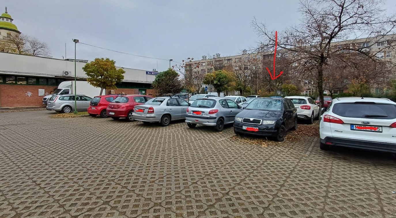 Lejárt műszakis fekete Skoda Fabia, a csepeli piac parkolójában van.