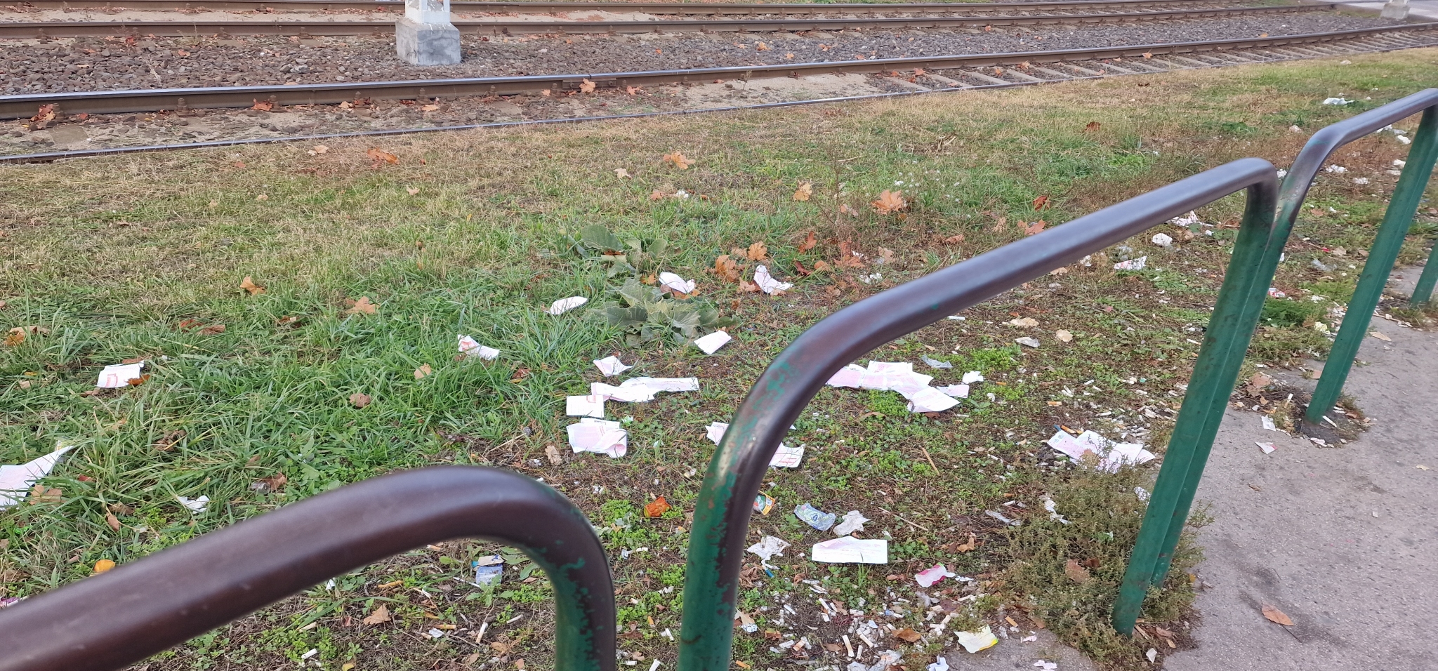 Xx.Nagykőrösi út Hatar út kerszteződésében a buszmegállónál végig szemét van.