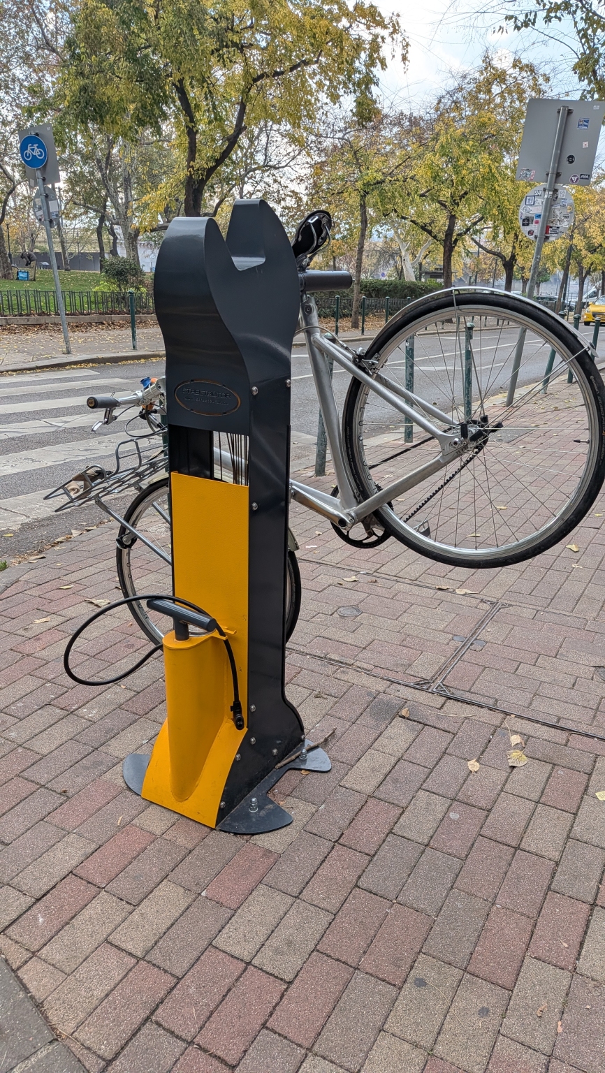 A Jászai térnél (a Pozsonyi út elején, a SPAR Market mellett) található biciklis szervizpont pumpája tönkrement (nincs pumpanyomás)