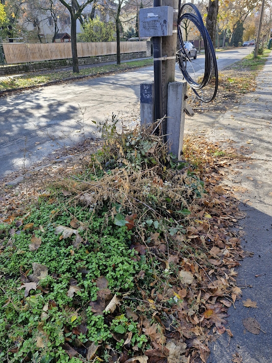 Zöldhulladék több kupacban és gondozatlan utcafront(ok) a Szugló utca 38 szám előtti utcaszakaszon. Kérjük a terület tisztántartását.