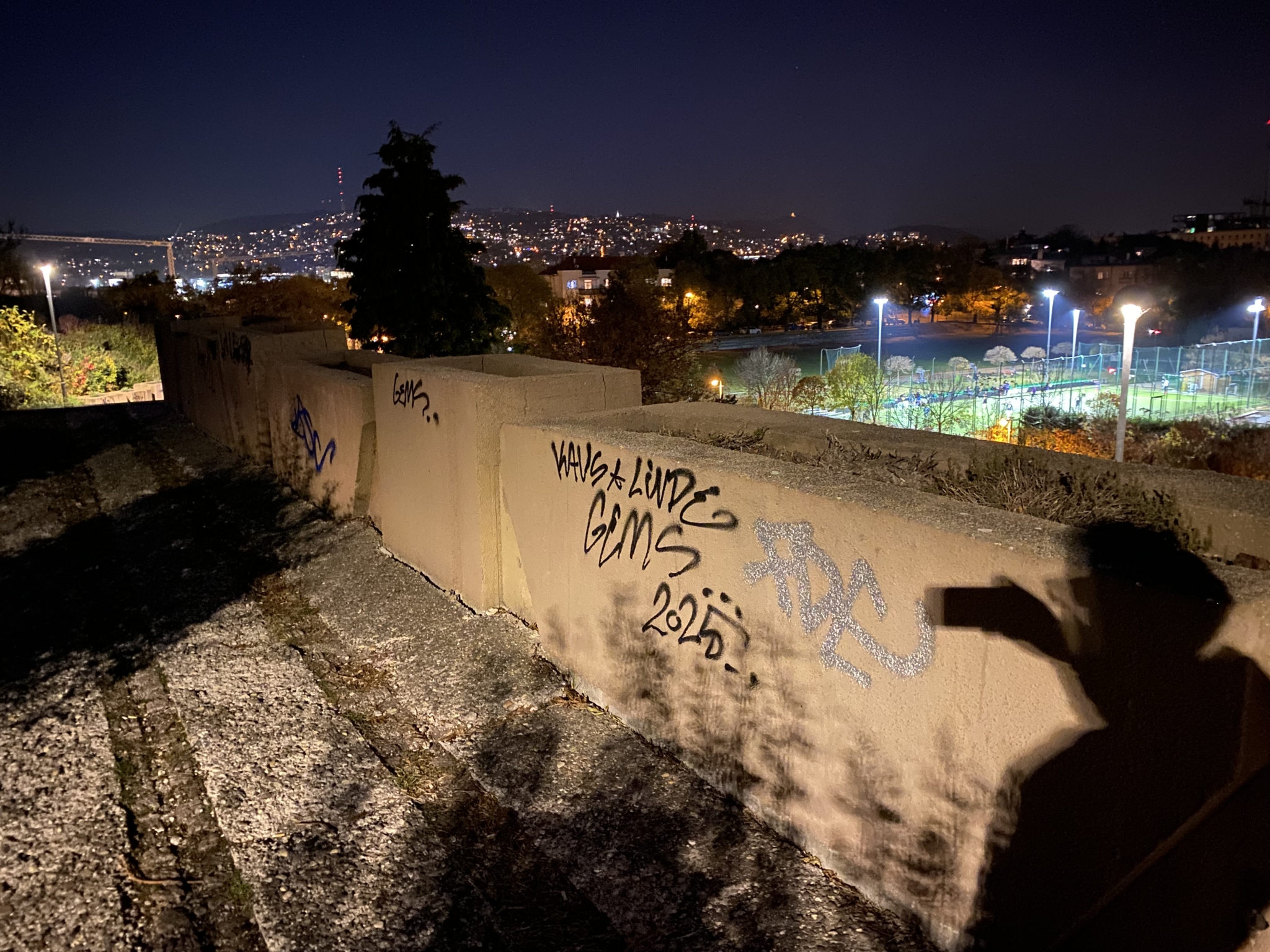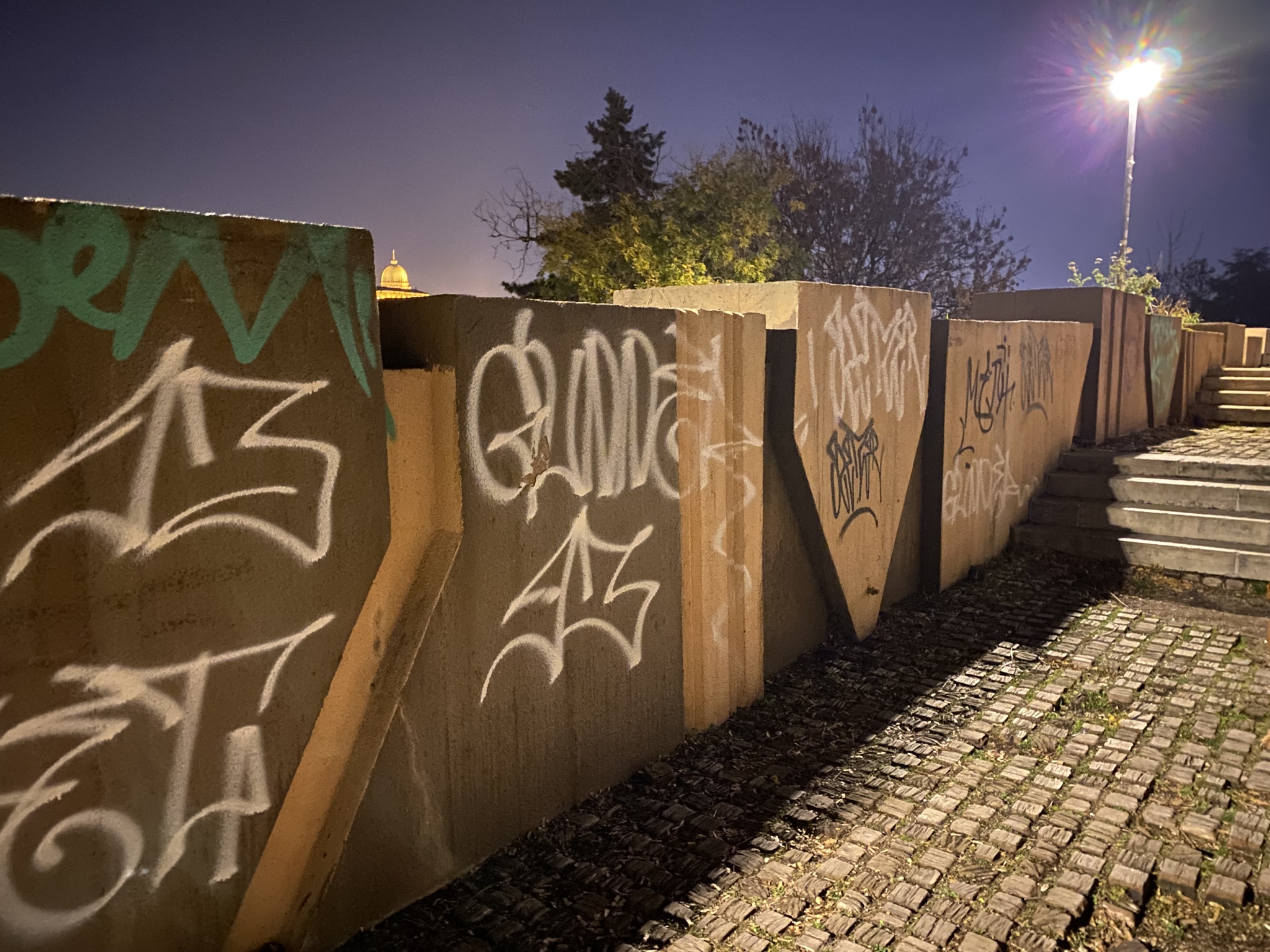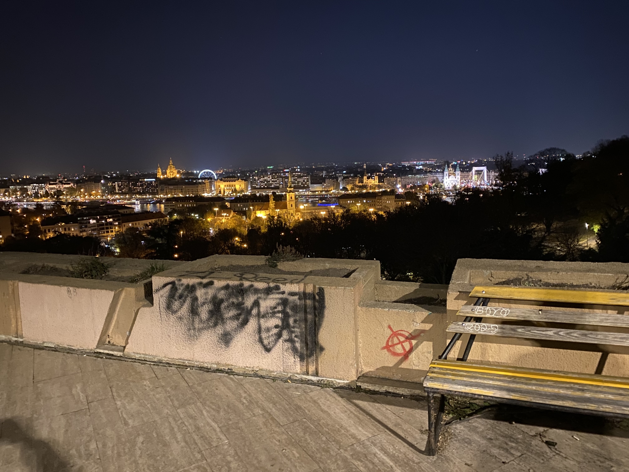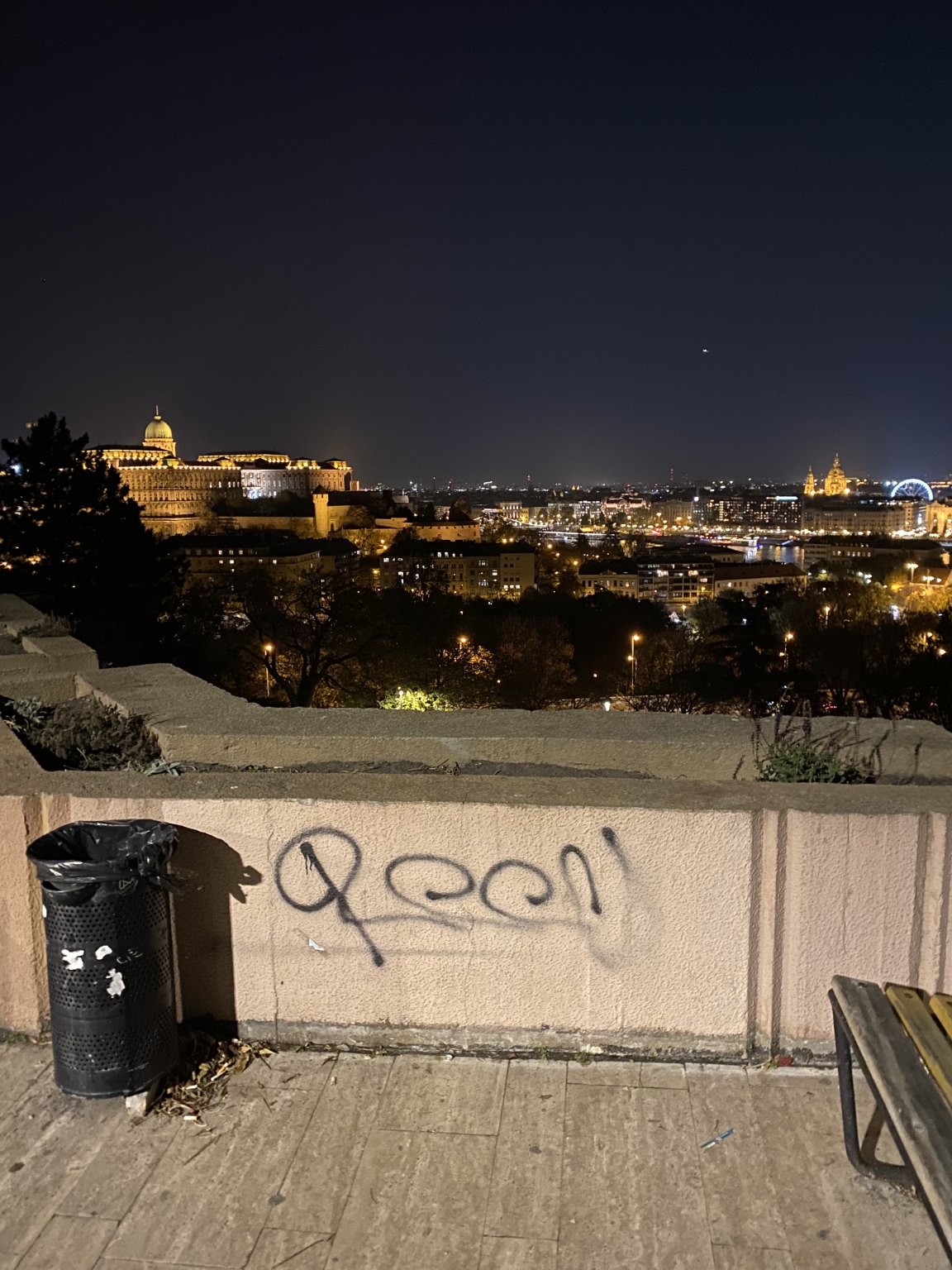 A gellért-hegyi víztározó északi falát teljesen összefújták. Más kisebb helyeken is megjelent sok ronda “tag”.