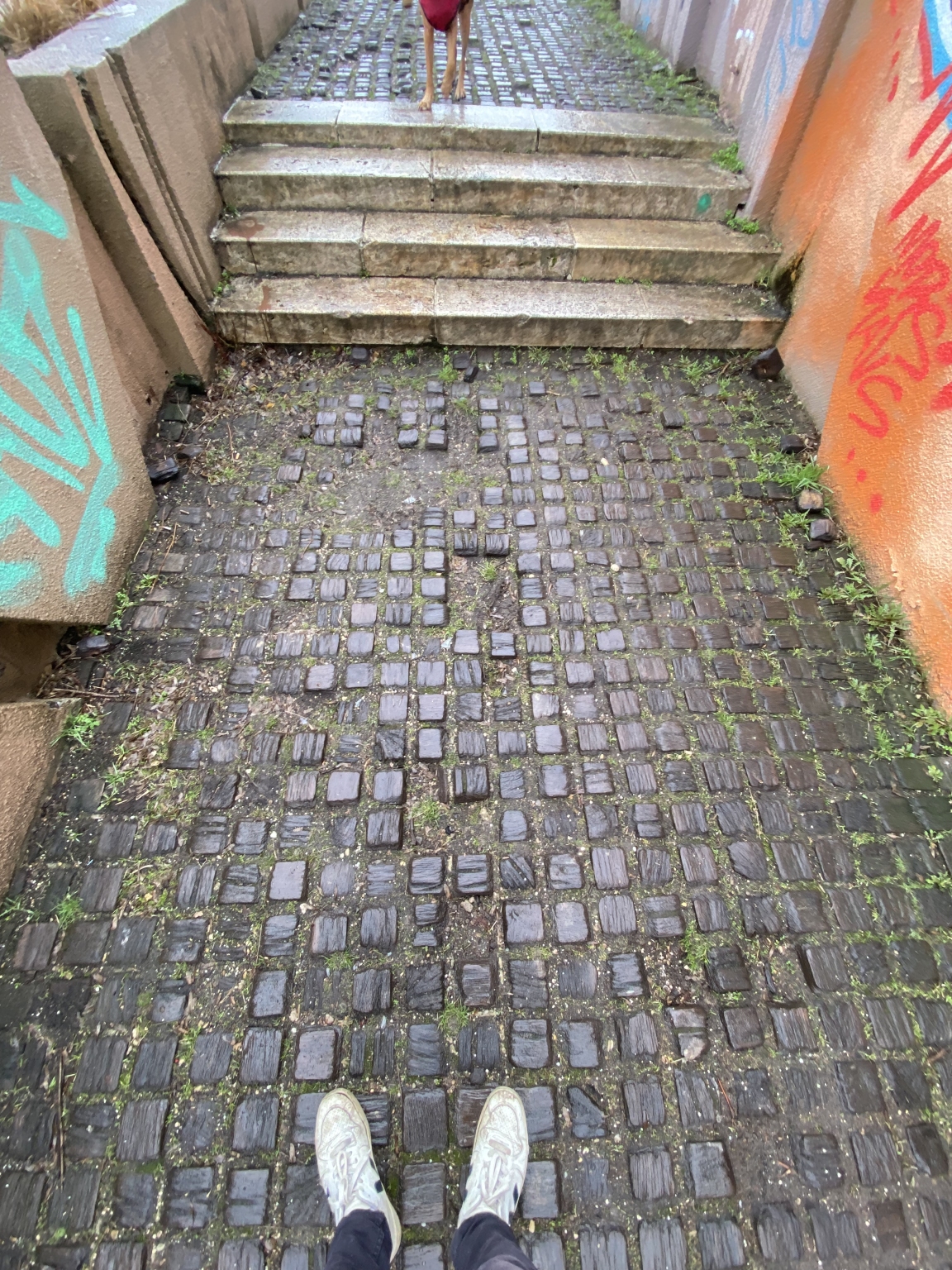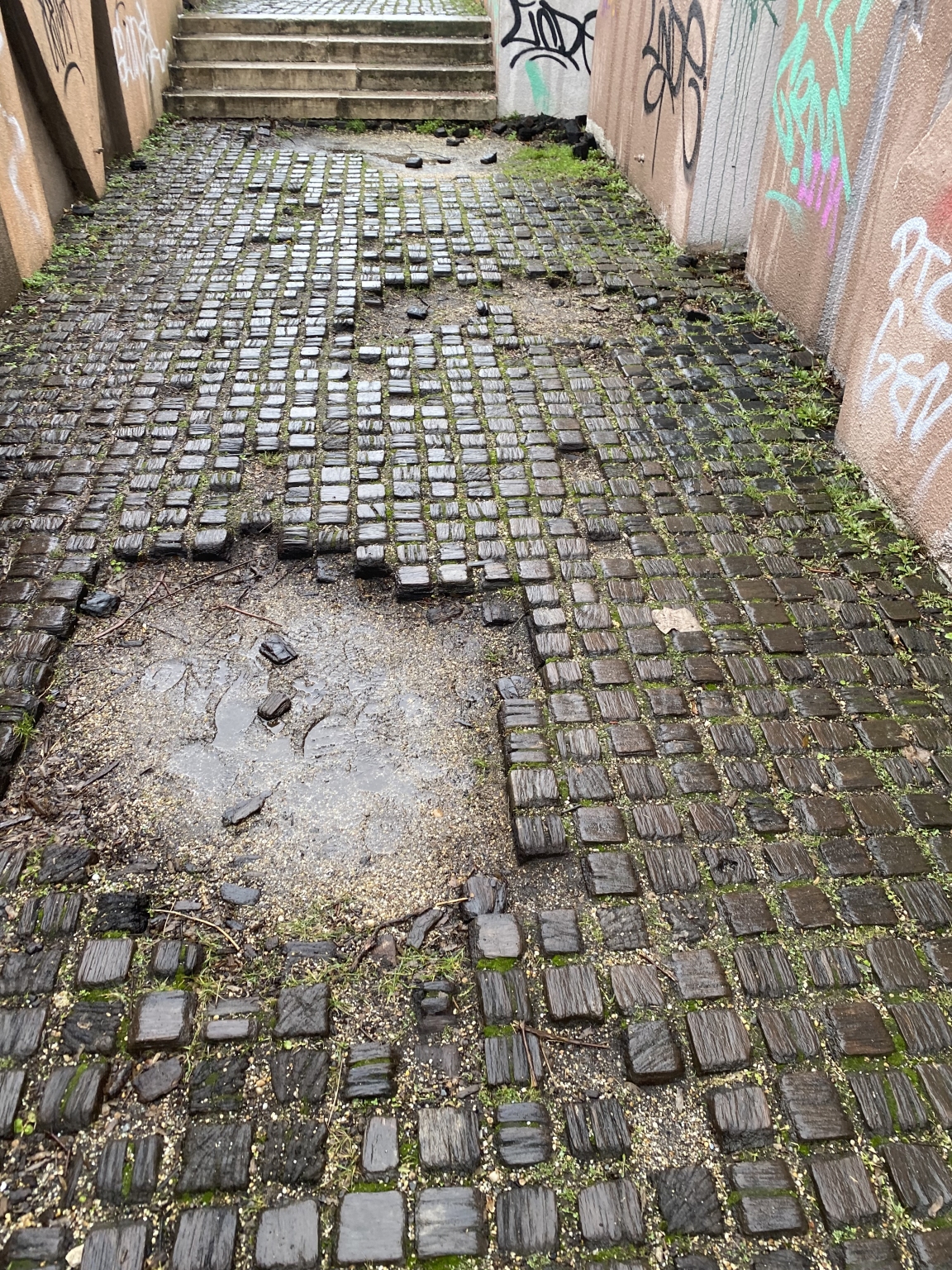 „A víztározó park járóburkolatát is csatolom, amit eddig nem tettem. Innem teljesen kivesztek már a kockák, látszik hogy meddig éra keletkezett lyukakban a bokám”