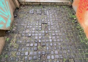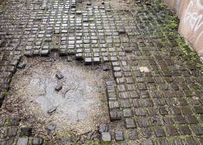 Egy kis részen korábban meg lett csinálva kőkockásra (erről is csatoltam képet), ezt kellene továbbvinni a maradék helyeken is.