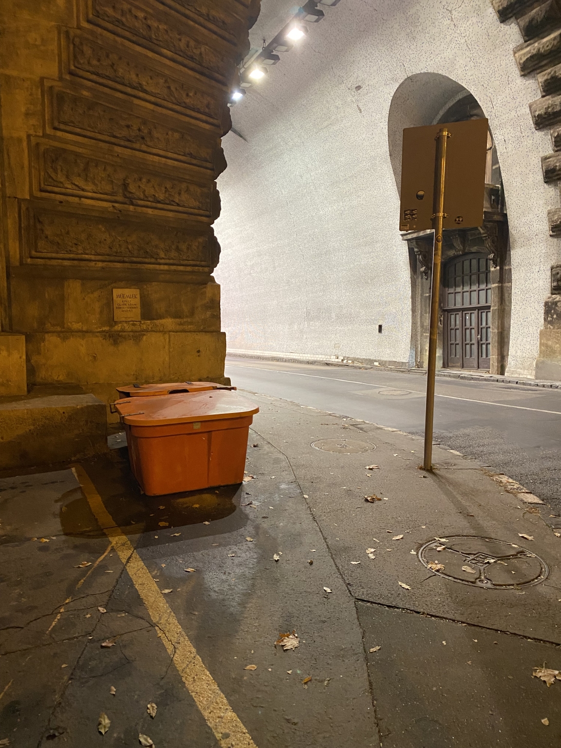 A clarkon az alagút gyalogútjának tövébe ledobtak két nagy láda csúszásmentesítőt. Az a baj ezzel, hogy itt viszonylag sok ember (főleg kóválygó turista) halad át, szűk az útszakasz és ezt tették még szűkebbé. Biciklisek is mennek itt a járdán mert aki nem hülye az levágja hogy az alagútban az úttesten átbringázni közvetlen életveszély jelenleg.