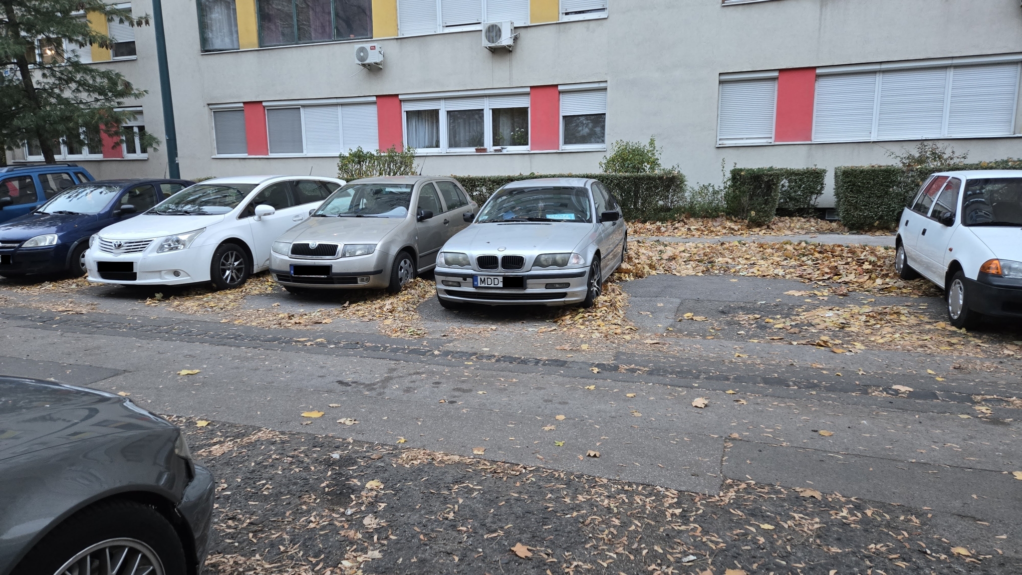 Lejárt műszaki vizsgával, forgalomból kivonva szeméttárolónak használva foglalja az egyébként is nagyon kevés pakolóhelyet az MDD kezdetű rendszámmal látható BMW. Kérem, intézkedjenek az elszállításról.