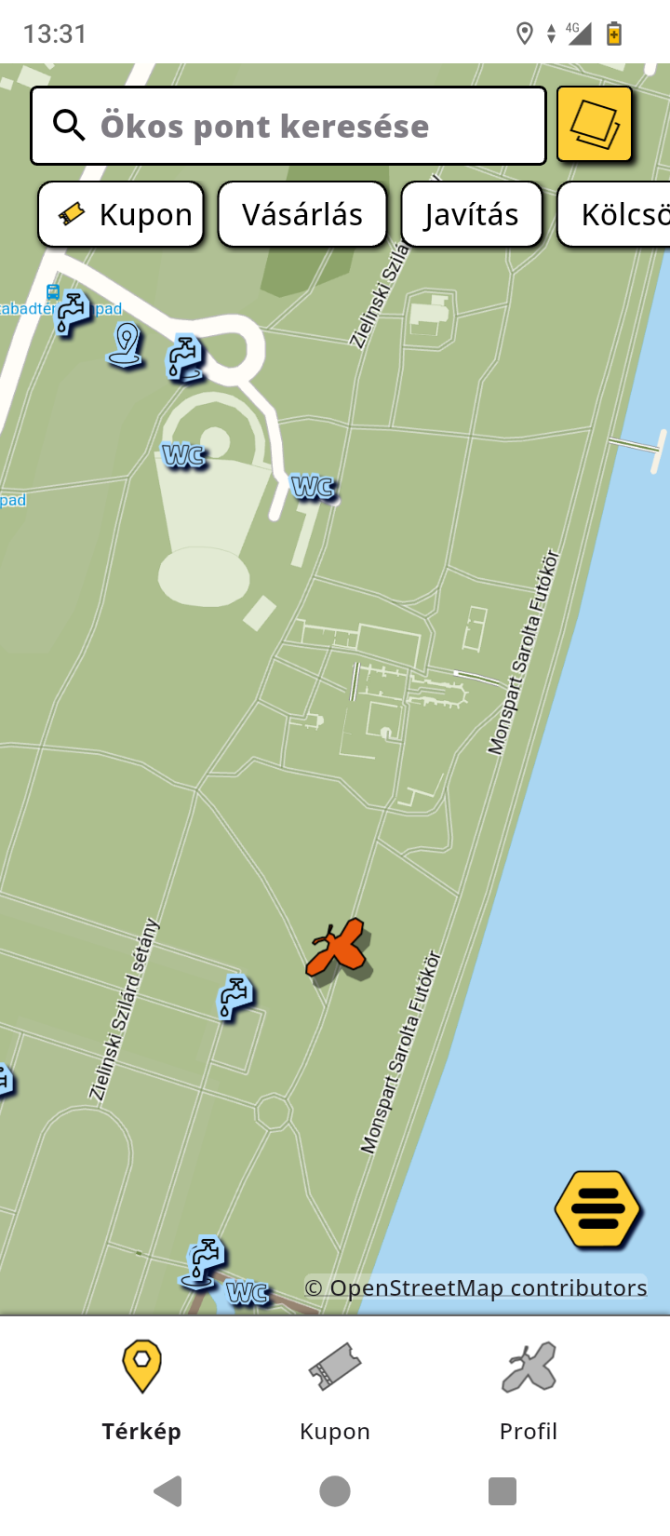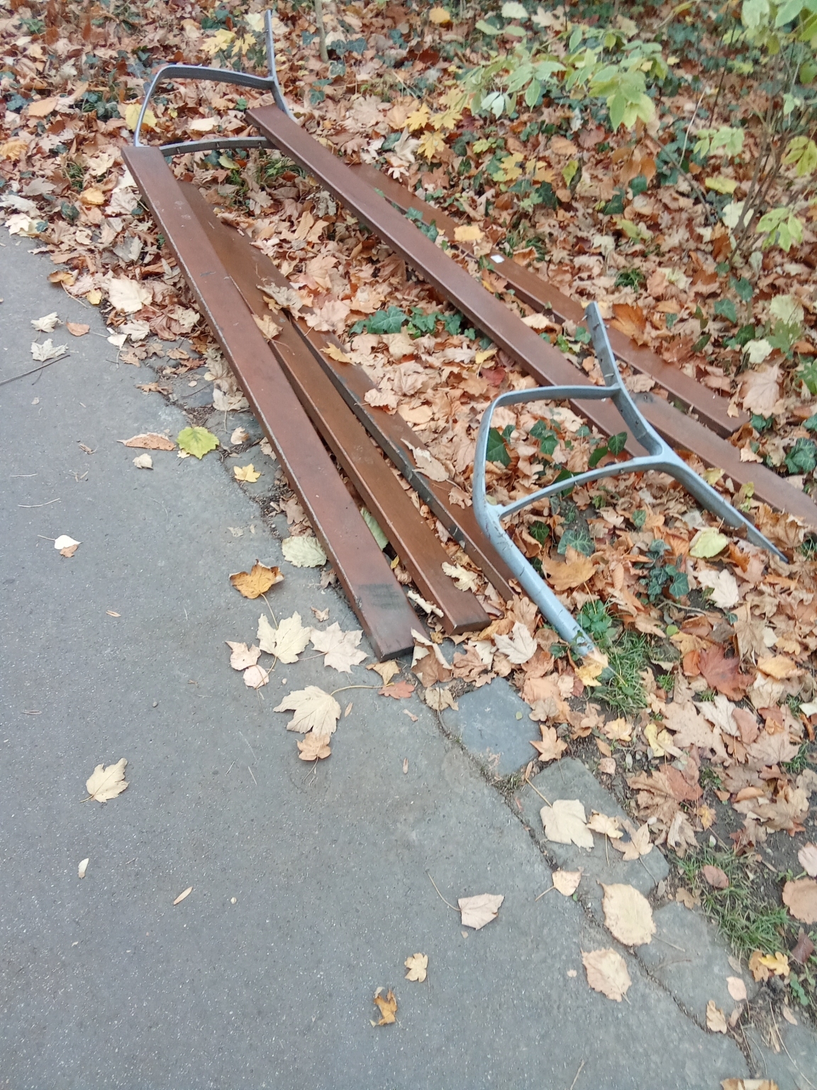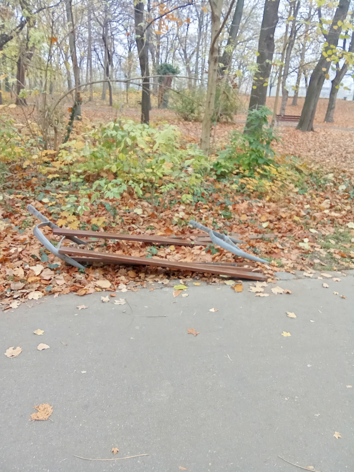 A Margitszigeten, a Monspart futokor es a Rozsakert kozti sétányon található egy széttört pad.