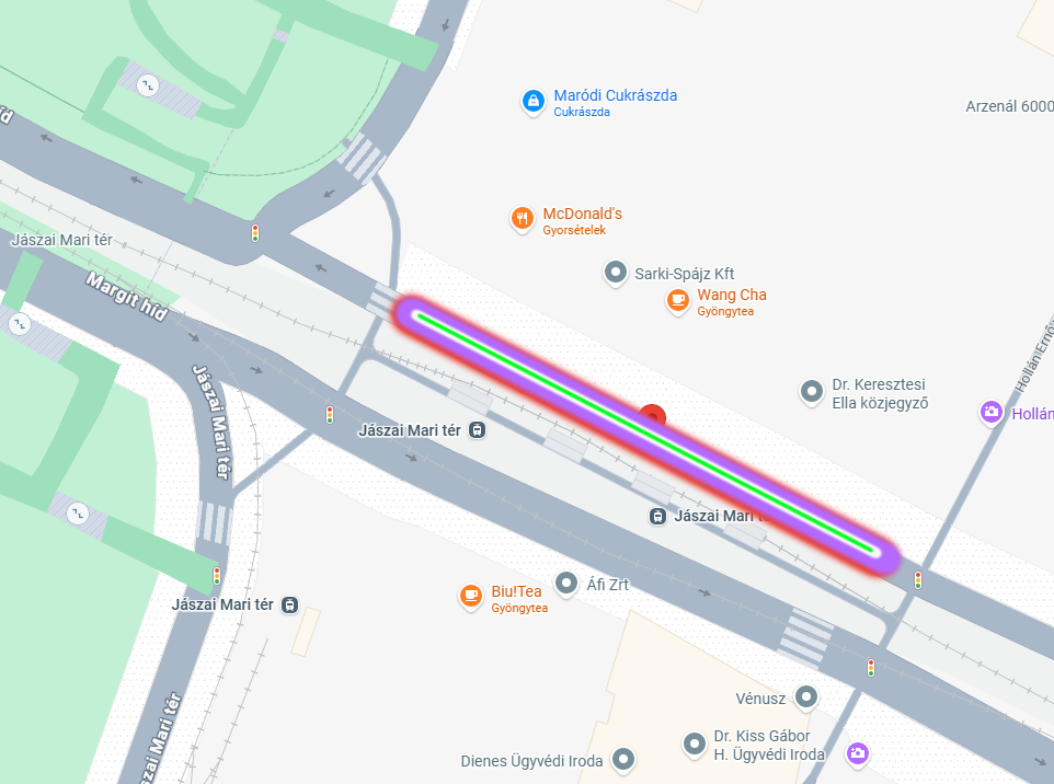 A Szent István krt. páros oldalán, azaz a hídra vezető kerékpársávban több úthiba is nehezíti a kerékpárosok közlekedését. Tekintve, hogy itt szűkülő sávok vannak és a régi kátyúk javítása sem érezhető szakmailag megfelelőnek (a sáv egyenetlen, puklis, nyomvájús, kátyús), ezért tisztelettel kérem az illetékestől, hogy elvárható minőségben legyenek kedvesek javítani a jelölt szakaszon lévő kerékpársáv minőségén. Értem, hogy különösen terhelt útszakasz, de egyszer kellene profin megjavítani, így hosszútávon nem lenne vele több probléma.