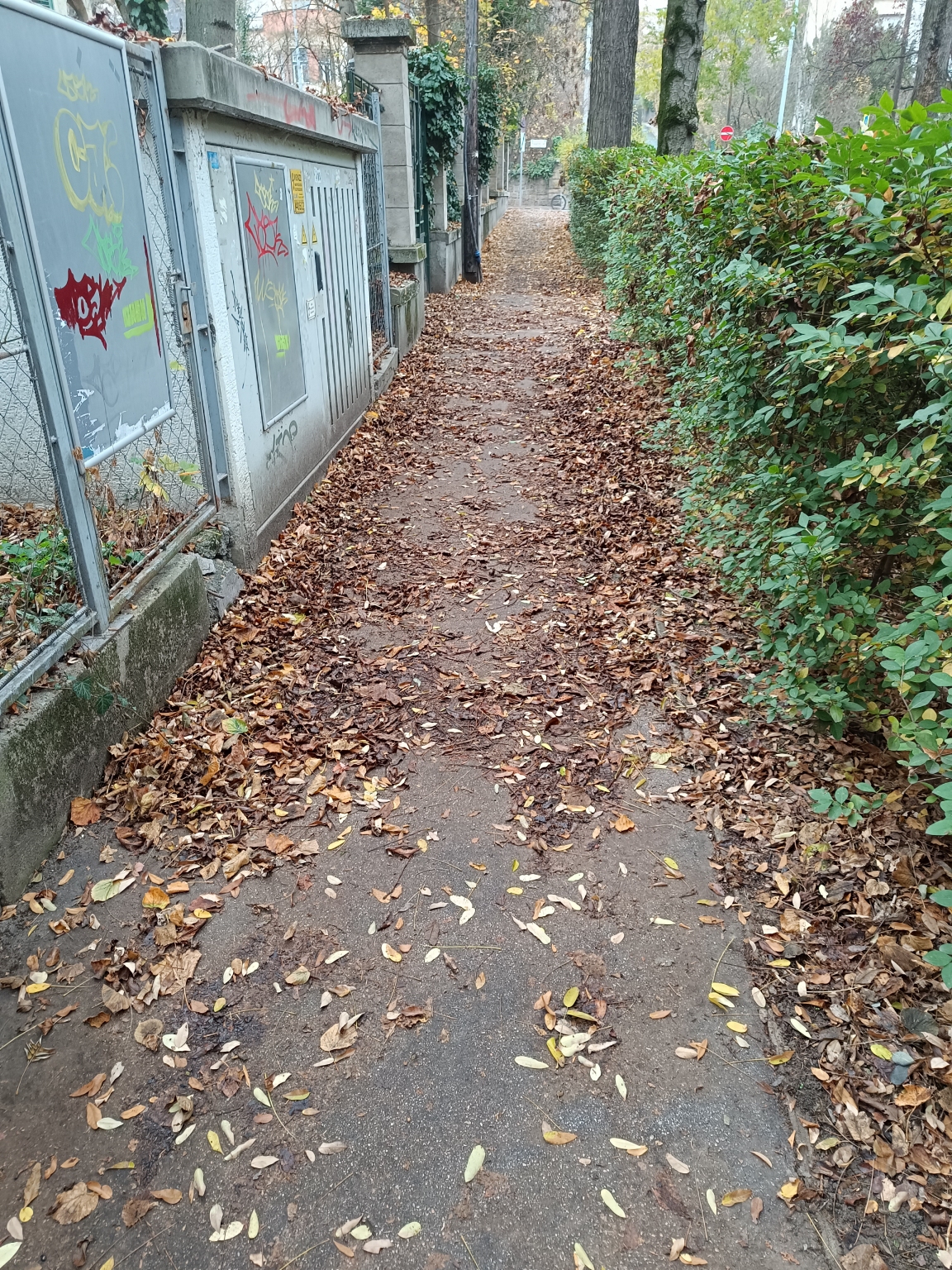 A Lotz Károly utca és a Pasaréti út sarkán lévő társasház (Pasaréti út 78) soha nem takarítja a járdát, jelenleg tele van levelekkel, ami nedvesebb nagyon csúszós, de rengeteg szemét is van azon a részen.