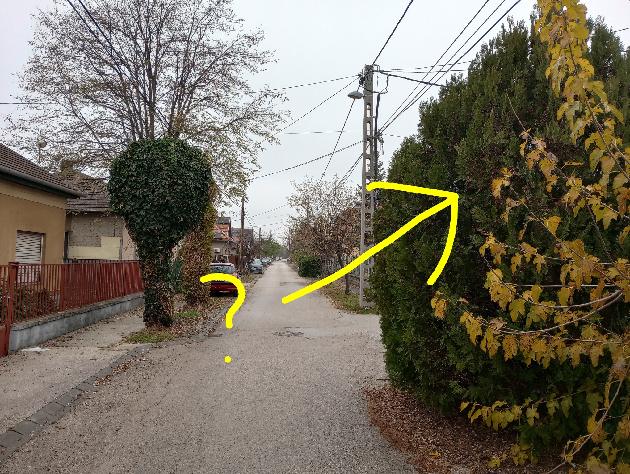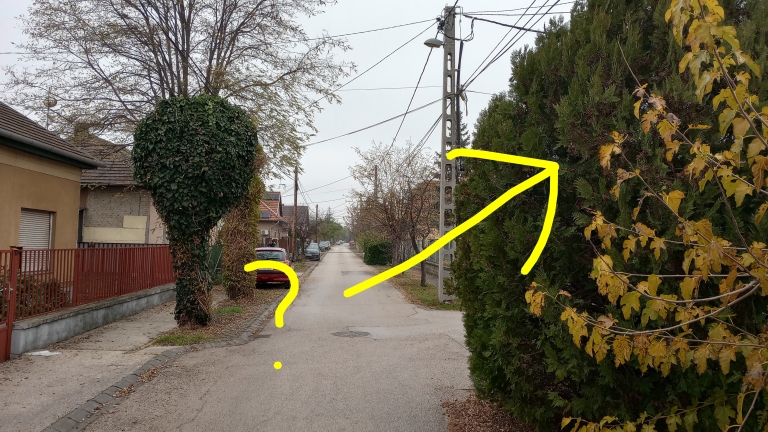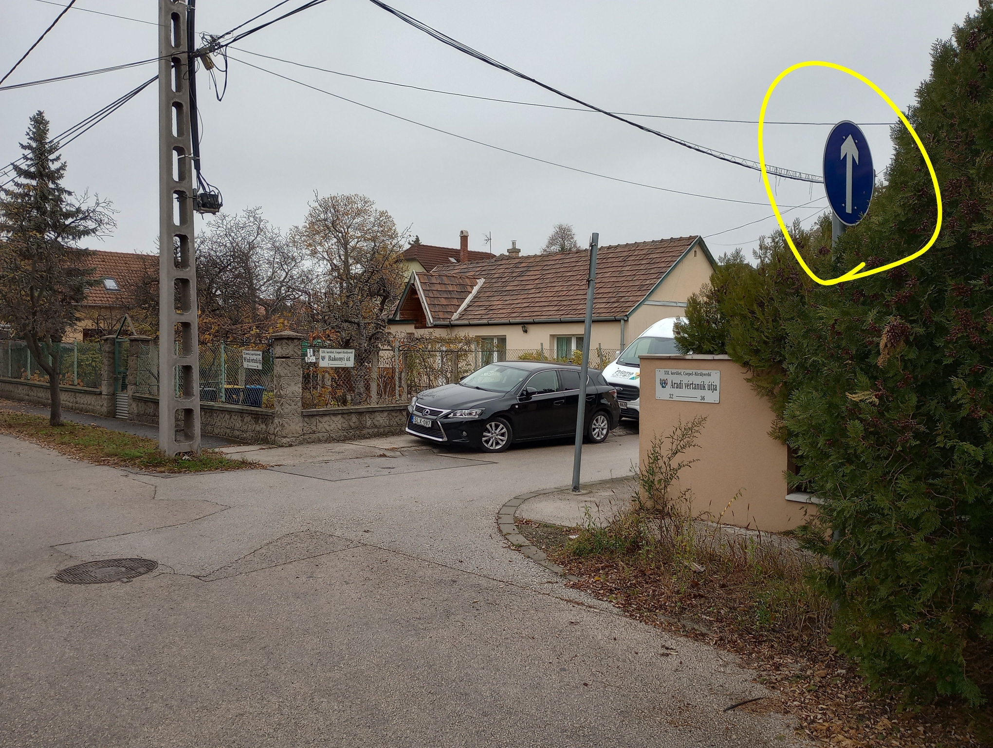 Csepelen az Aradi Vértanúk útja és a Bakonyi utca kereszteződésében lévő kötelező haladási irány táblát teljesen eltakarja az út menti bokor. Valójában még a járdán is elég bajos közlekedni azon a szakaszon (ez az utolsó képen látható). A tábla rejtettsége miatt az elsőbbségadási helyzet is kevésbé egyértelmű, volt is már itt emiatt baleset.
