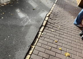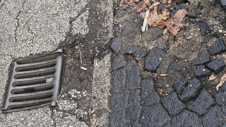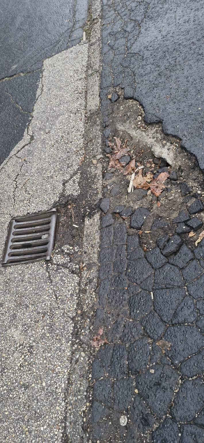 Beszakad a burkolat a Páskomliget 41 elötti csatorna mellet