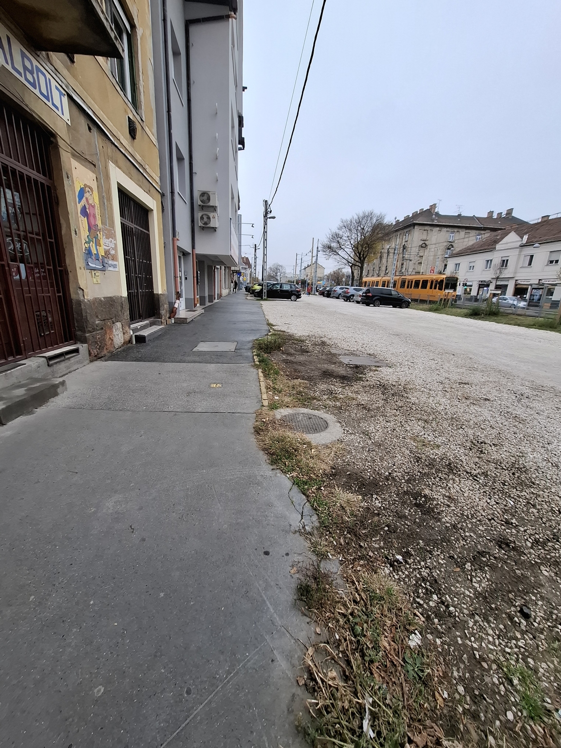 A társasház elé, a parkoló szélére a tavalyi vagy a tavaszi faültetési időszakba több fát ültettek, de ezekből 2-3 már hiányzik, valószínűleg kiszáradt.