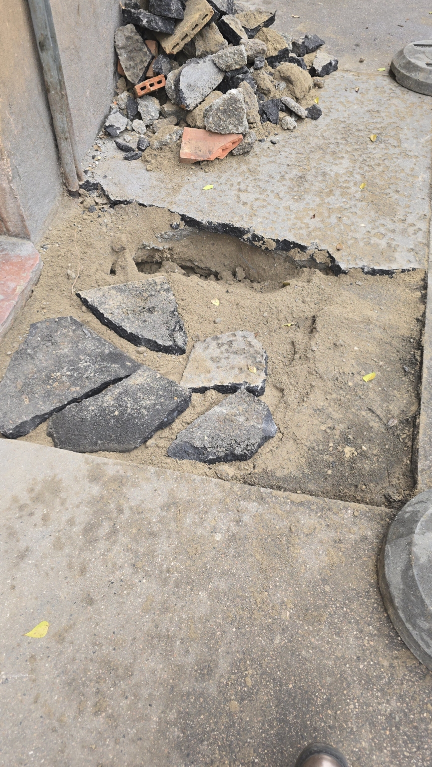 Utcai rossz világítás miatt fel törték a járdát a és úgy hagyták.Ami nagy probléma hogy mindezt a bejárati ajtóm előtt történt ami számunkra baleset veszélyes