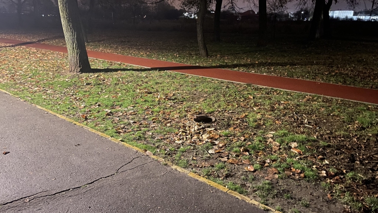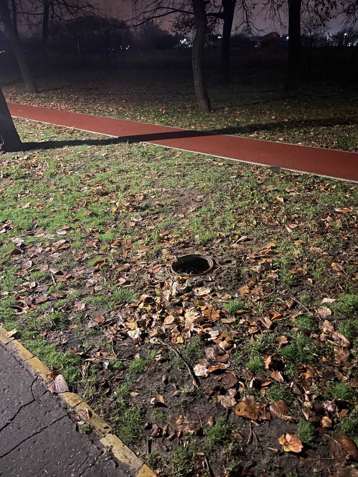 A hasznalaton kovuli aknanak eltunt a fedlapja a levelek alatt barki bele lephet es sulyosan megserulhet.