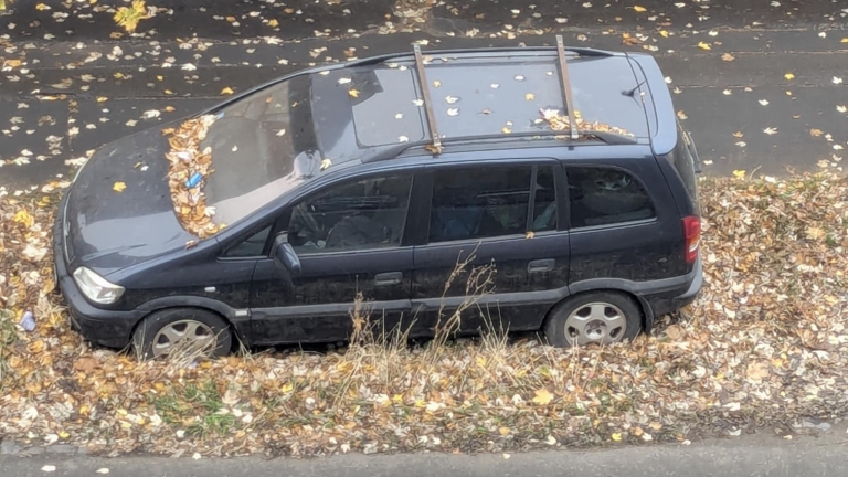A vasúttörténeti park bejáratától nem messze, a Hype Productions Kft. előtt található személygépkocsi már több mint 1.5 éve mozdulatlanul áll. Kerekei leeresztve, mozgást nem látható körülötte.