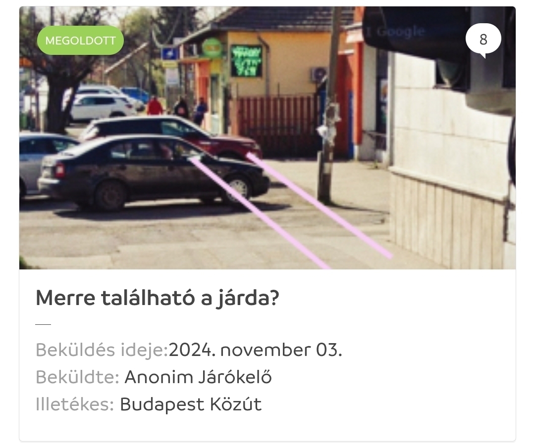 Tavaly a Járókelők csapata segítségével sikerült megvédeni a gyalogos felületet. Oszlopok kihelyezésével megakadályozták, hogy a járdán tudjanak parkolni.