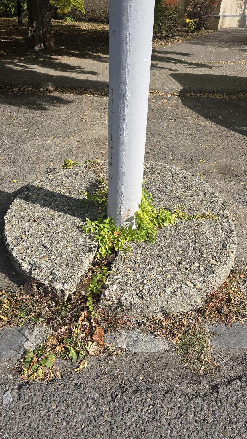 Közvilágítási lámpát tartó beton gyűrű meg van repedve.