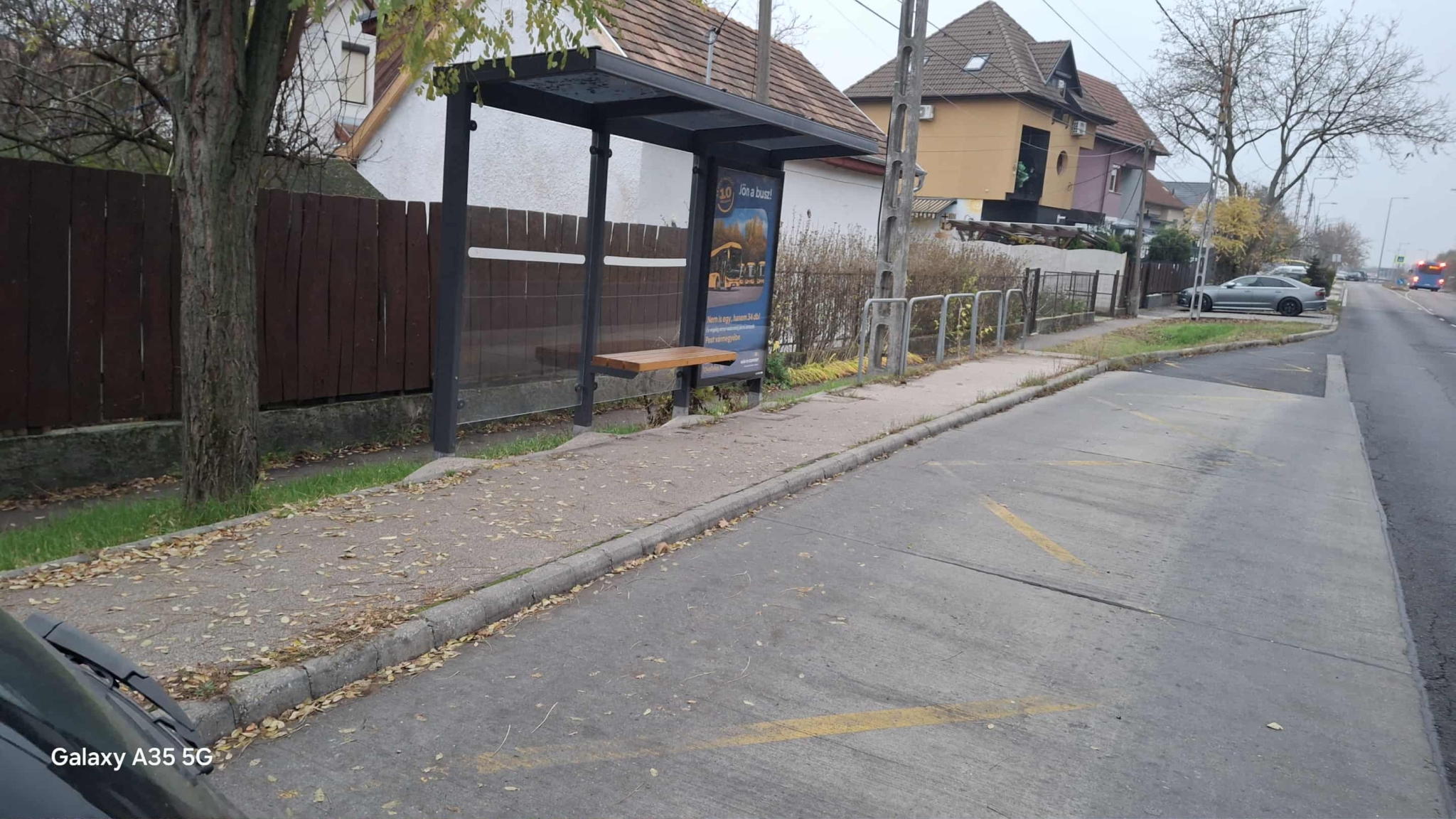 Megállóban lévő utas sötétedés után nehezen észre vehető. Sem közvilágítás sem fényreklám nem található a megállóban.