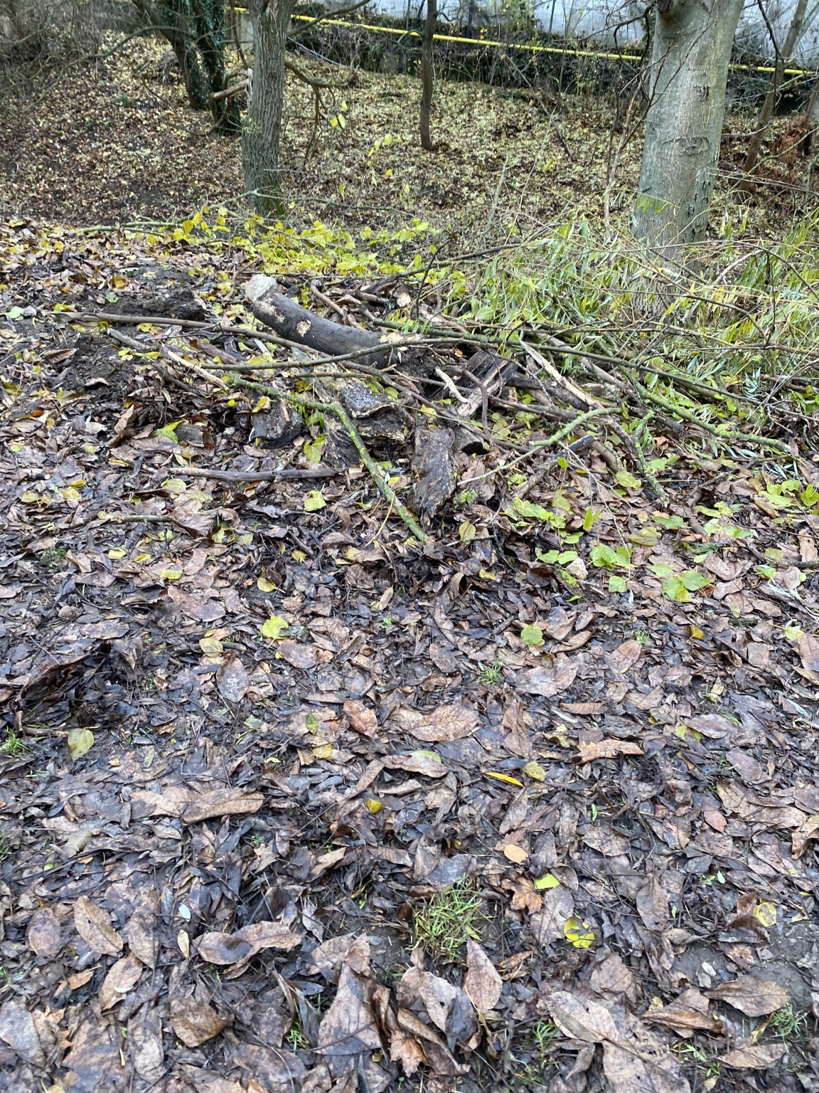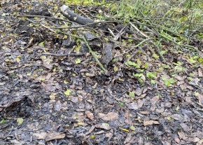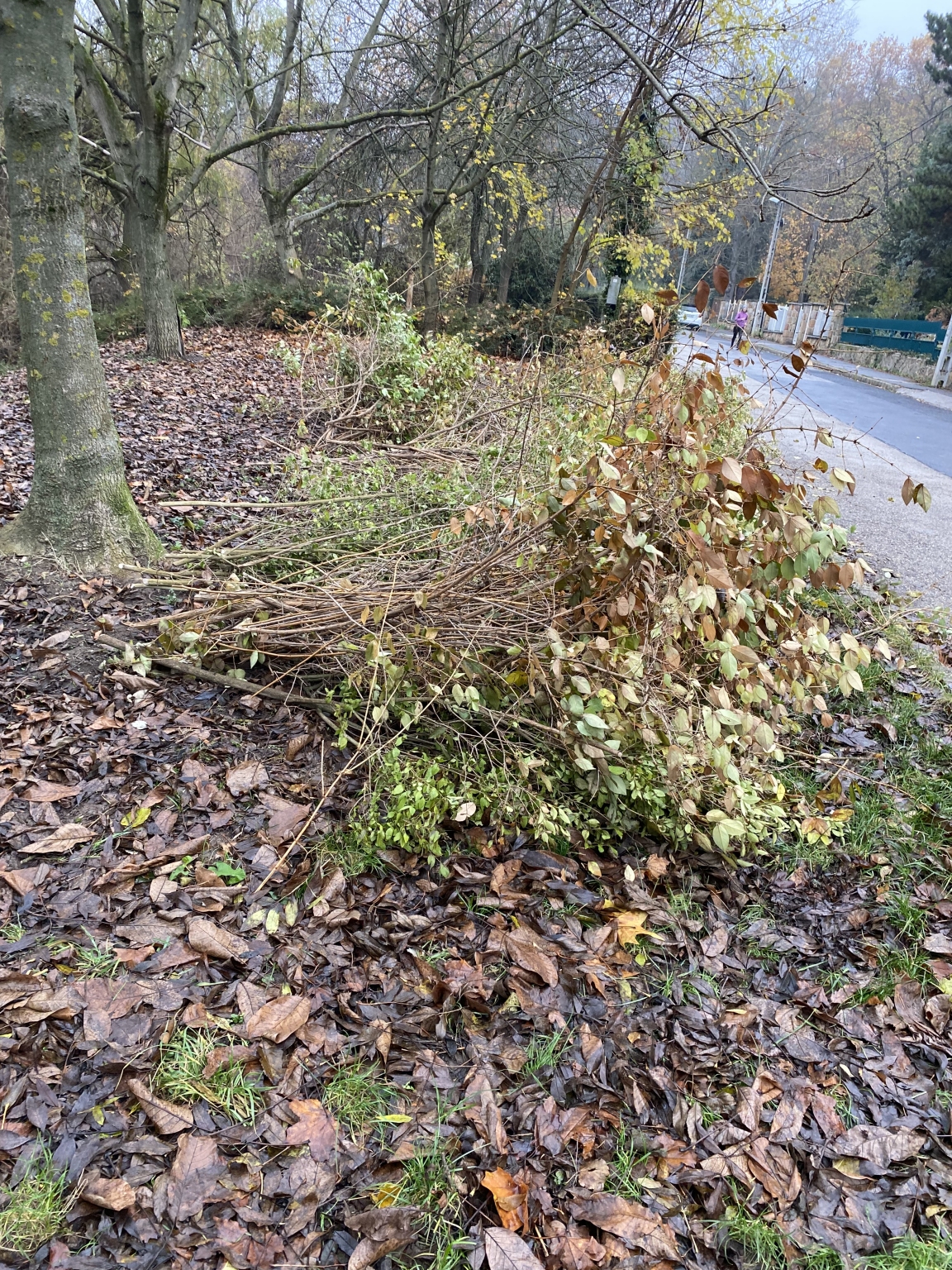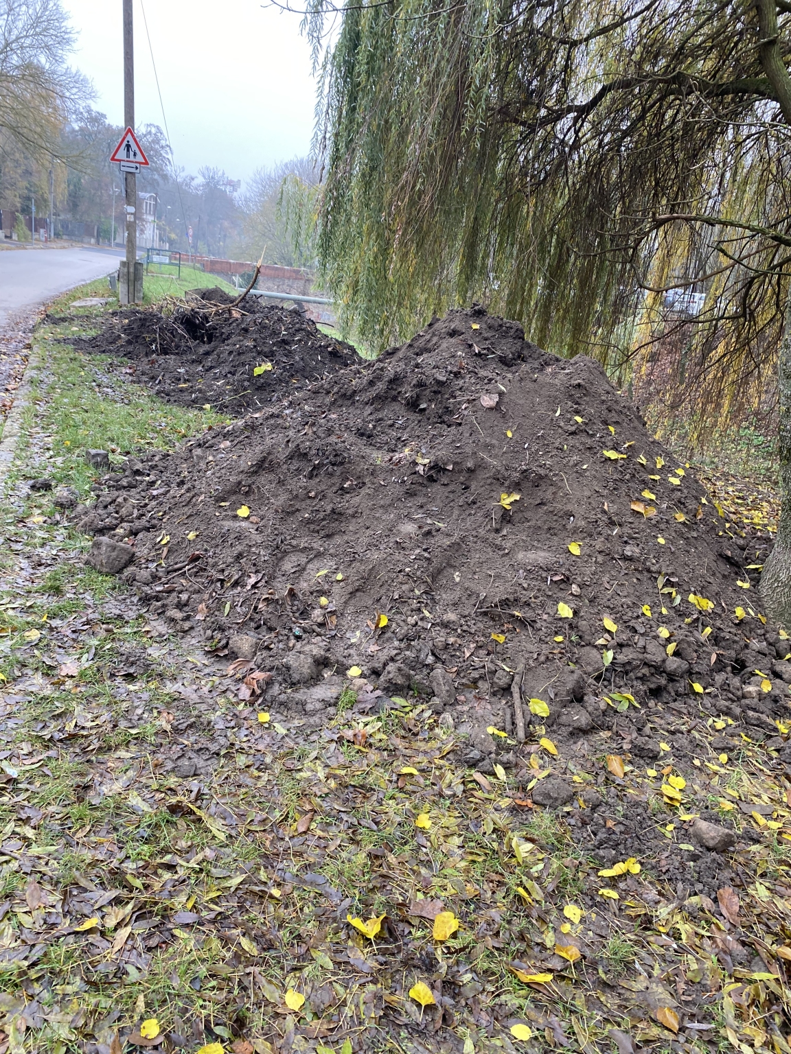 A Páfrány út felső szakaszán a zöldfelületen három nagy földkupac és több zöldhulladék-kupac található. Kérem szíves intézkedésüket.