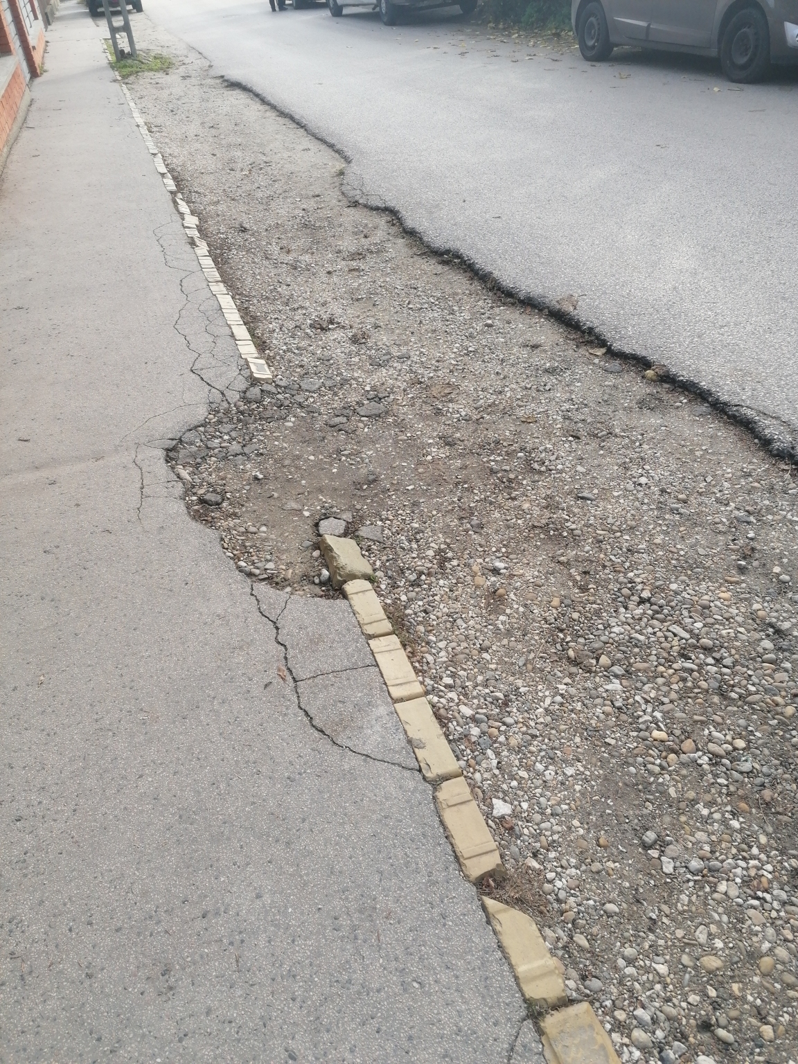 1213.Mária Királyné útja 184 előtt teljesen töredezett a járda és az aszfalt. Balesetveszélyes. Bejelentettük már többször is, de nem történt semmi előrelépés. Kérem szépen segíteni az illetékessel felvenni a kapcsolatot, és elintézni a javítást. Előre is köszönöm. Szafner Kata.