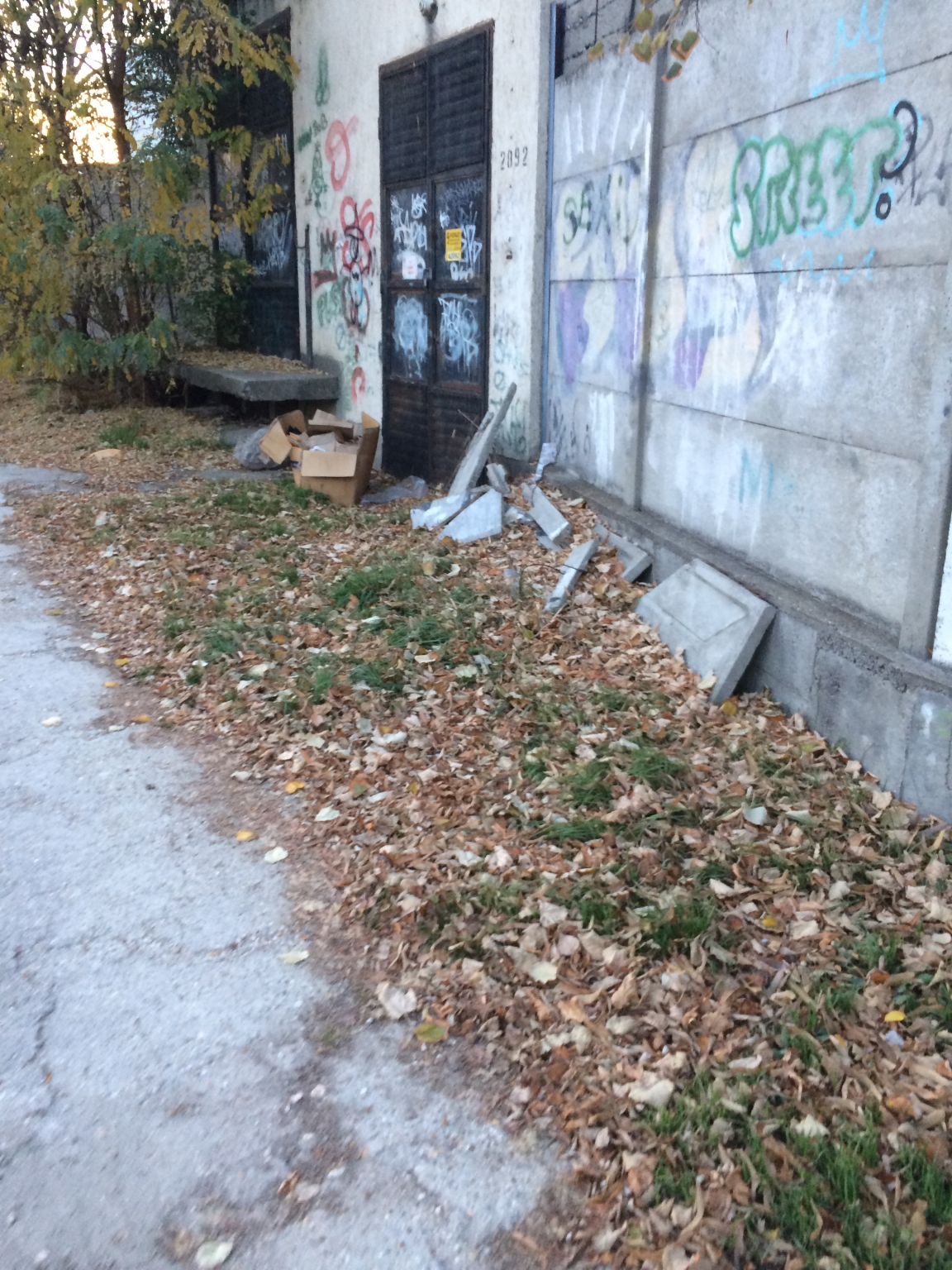 Jelzett helyszínen, és a Szent István utcai betonkerítés mellett több helyen törmelék, omladék hever szerte szét.