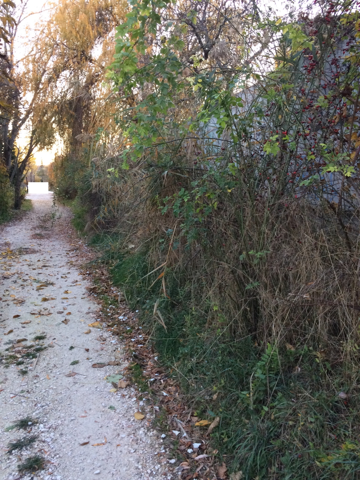 A Szent István utcában, az ipari ingatlan melletti kerítés oldalában teljesen elburjánzott a növényzet. Ápolatlan, rossz állapotok uralkodnak, a növényzet kilóg az útra, és a fák is belógnak már.