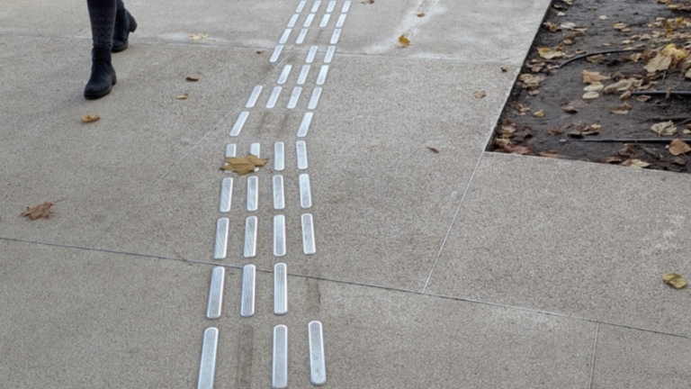 A Zene háza előtti taktilis jelek több mint egy éve eltűntek.