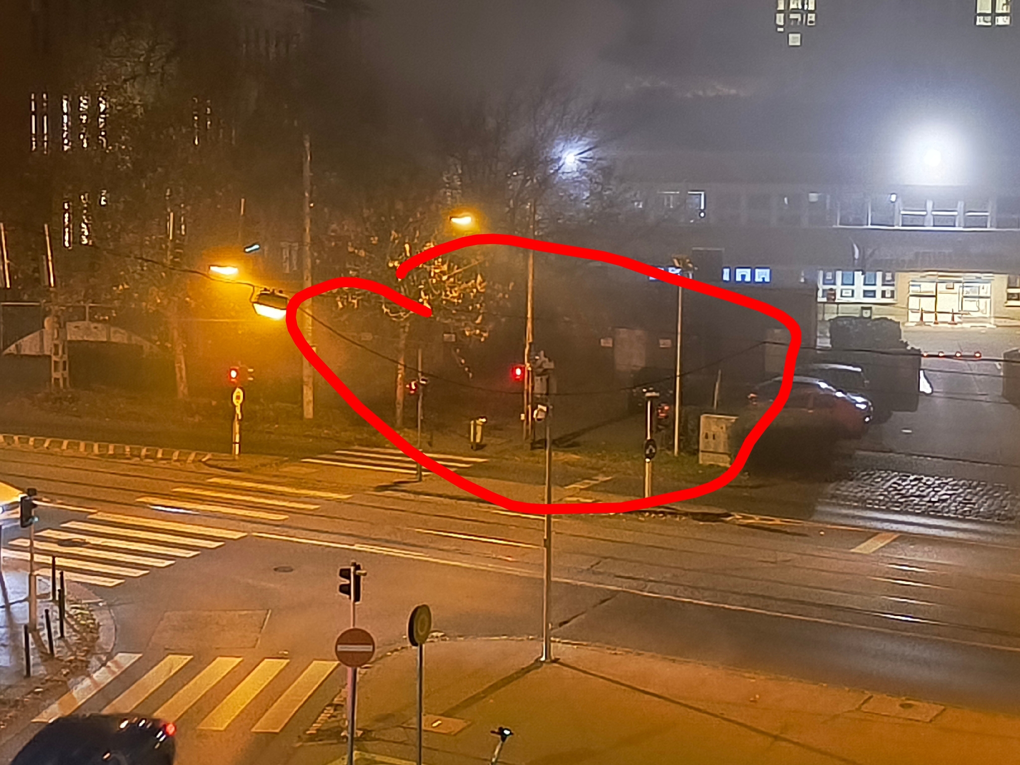 1096 Haller utca - Tűzoltó utca kereszteződésében, GOKVI-val szemben, lévő felfüggesztett lámpa vezetéke elengedett a bekarikázott részen, nem tudom mennyit enged tovább, nem értek hozzá, de talán érdemes lenne megnézni, nehogy leszakadjon a lámpa.