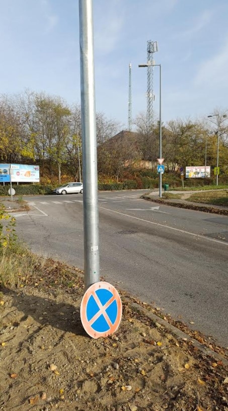 A lámpaoszlop cseréjét követően a várakozni tilos táblát nem helyezték vissza.