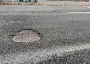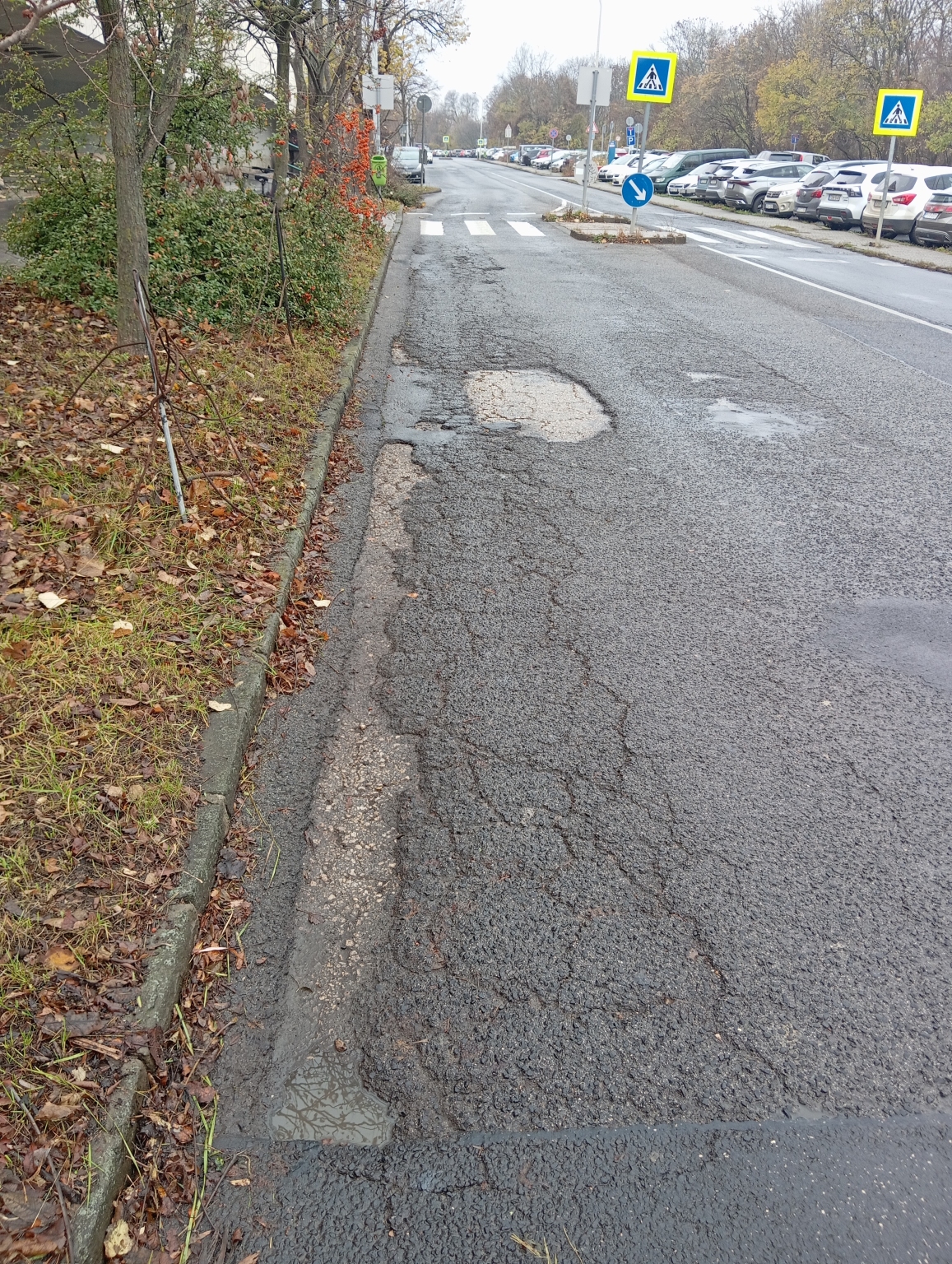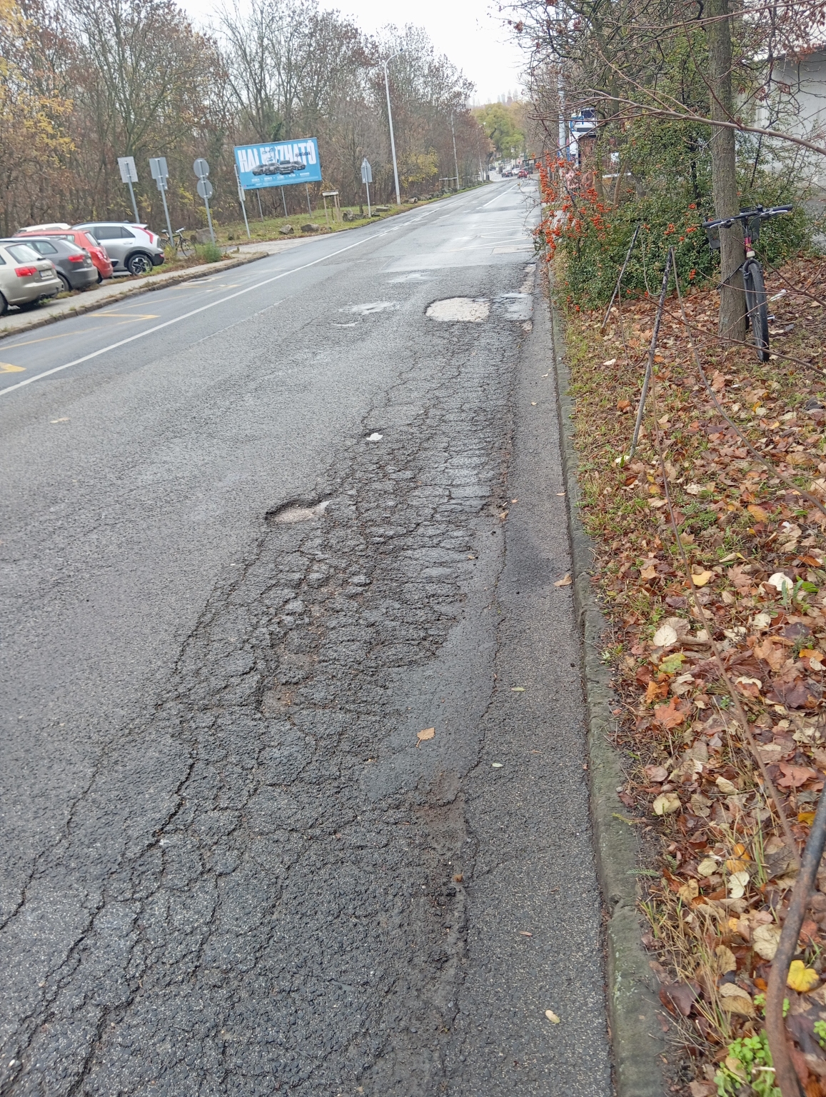 Kérem az illetékest, hogy tömjék be a kátyúkat, és hozzák rendbe a képen látható útszakaszt!