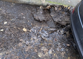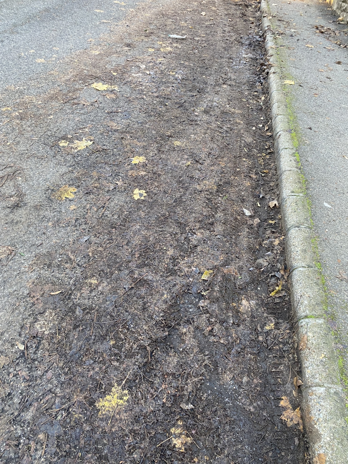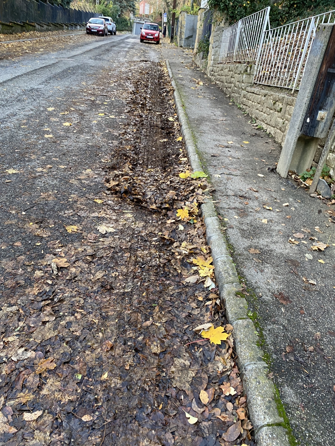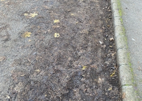 A Furulya utcában a falevelek teljesen szétmálltak, sáros réteget képeznek. Kérem szépen a takarítás elvégzését.