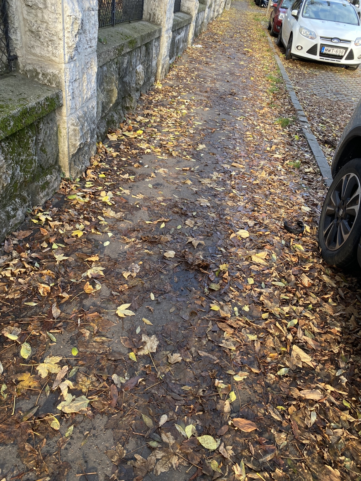 A nedves, letapadt falevelektől a járda nagyon csúszik. Kérem szíves intézkedésüket.